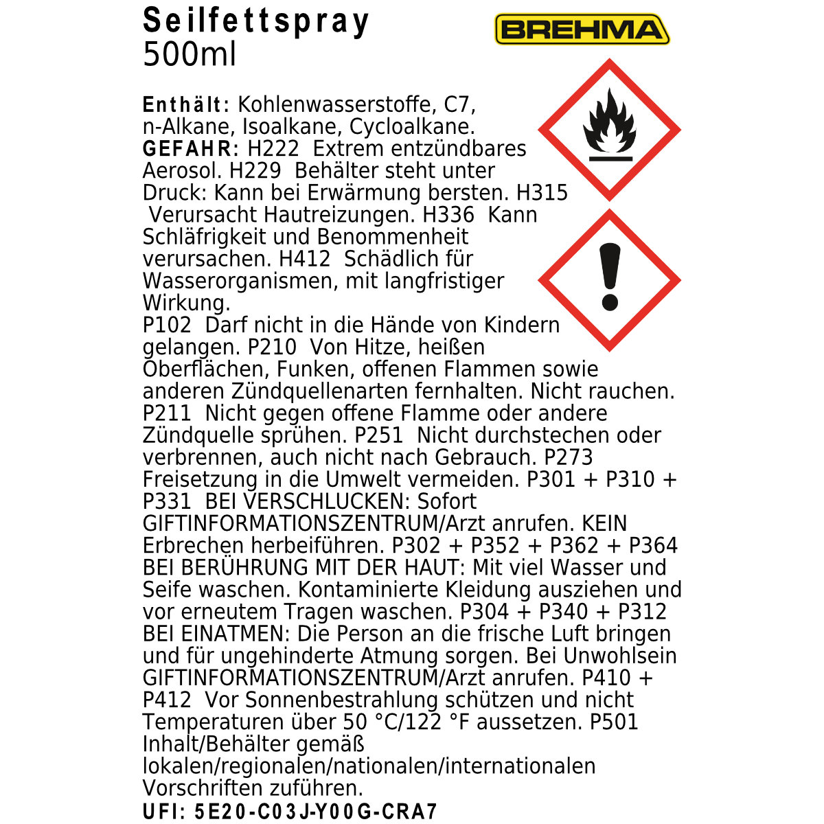 H222 Extrem entzündbares Aerosol.
