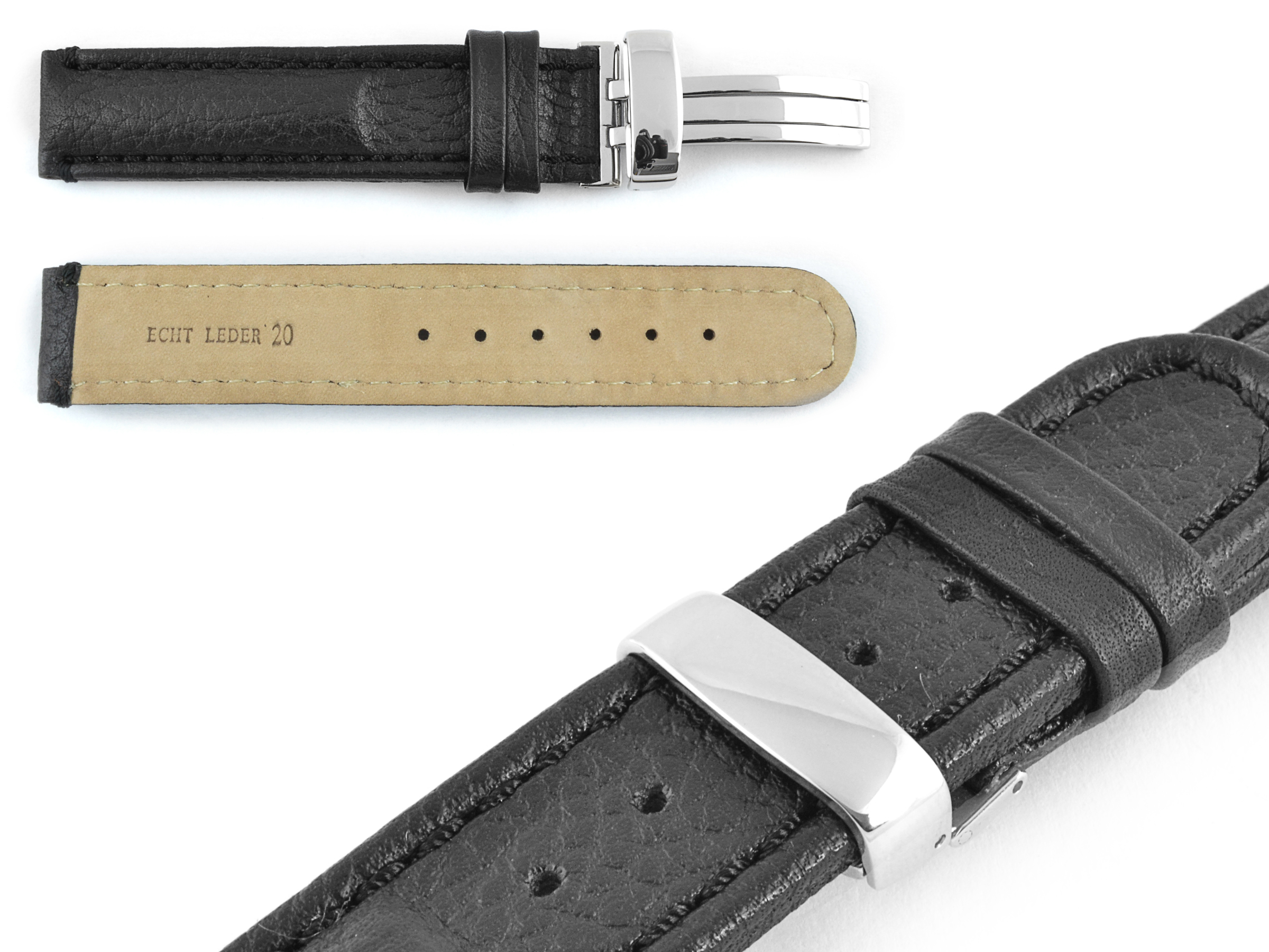 Kalbsleder Uhrenarmband mit Kippfaltschließe,