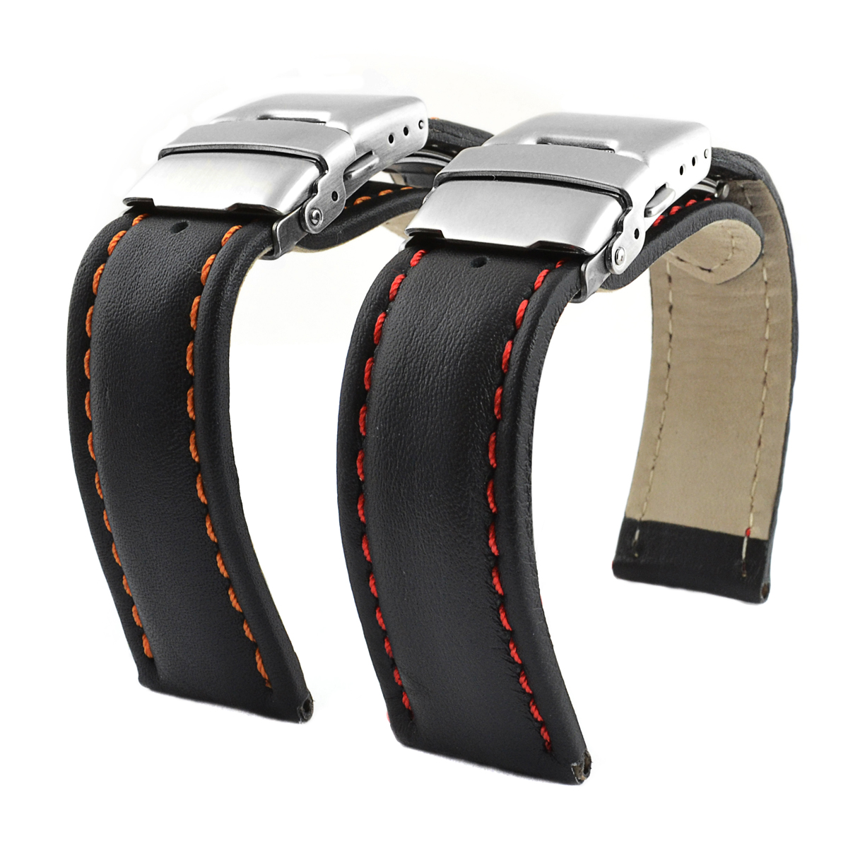 Unsere Uhrenarmbänder sind gefertigt mit größter Sorgfalt von bestem Hersteller, aus hochwertigen Materialien und Ledern. Das Band wird mit einer nickelfreiem L316 Edelstahl und einem passendem Federsteg-Set geliefert.