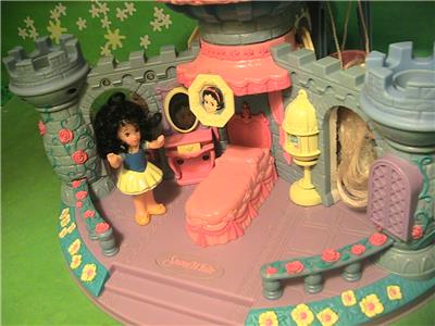 The Adorable Set is complete with 3 rooms for 3 princesses Cinderella, Belle and Snow White. There is an accessory for each princess. Each room has a button when pressed you have lights and sounds.