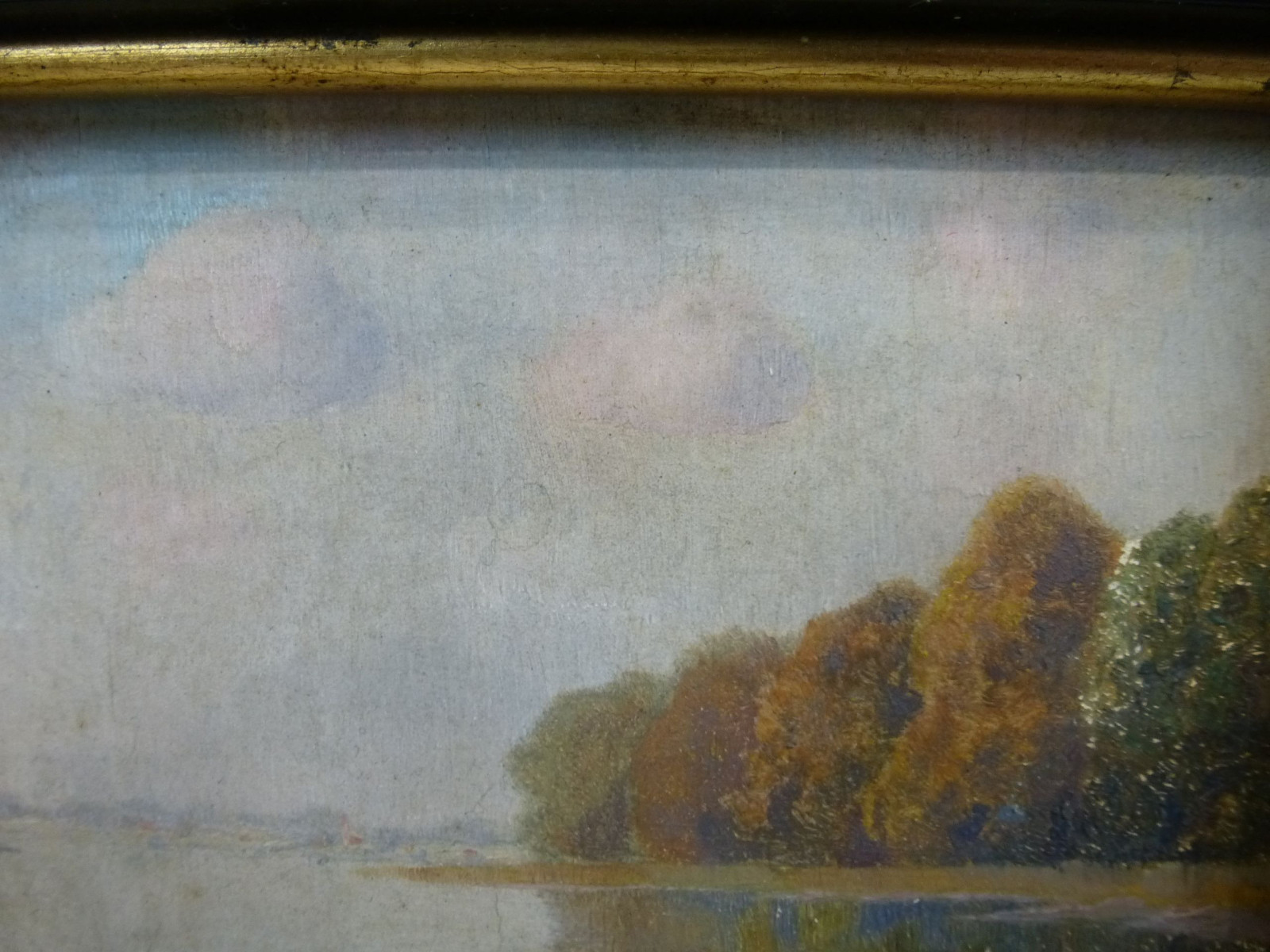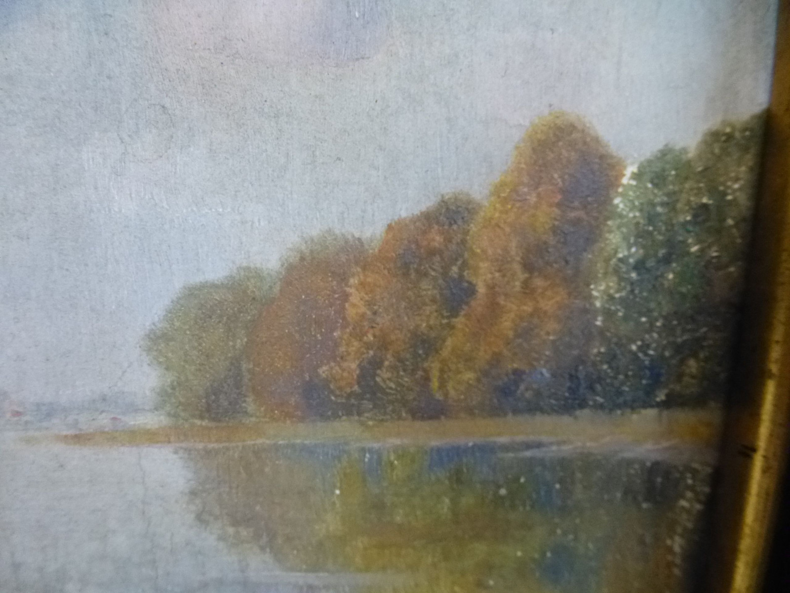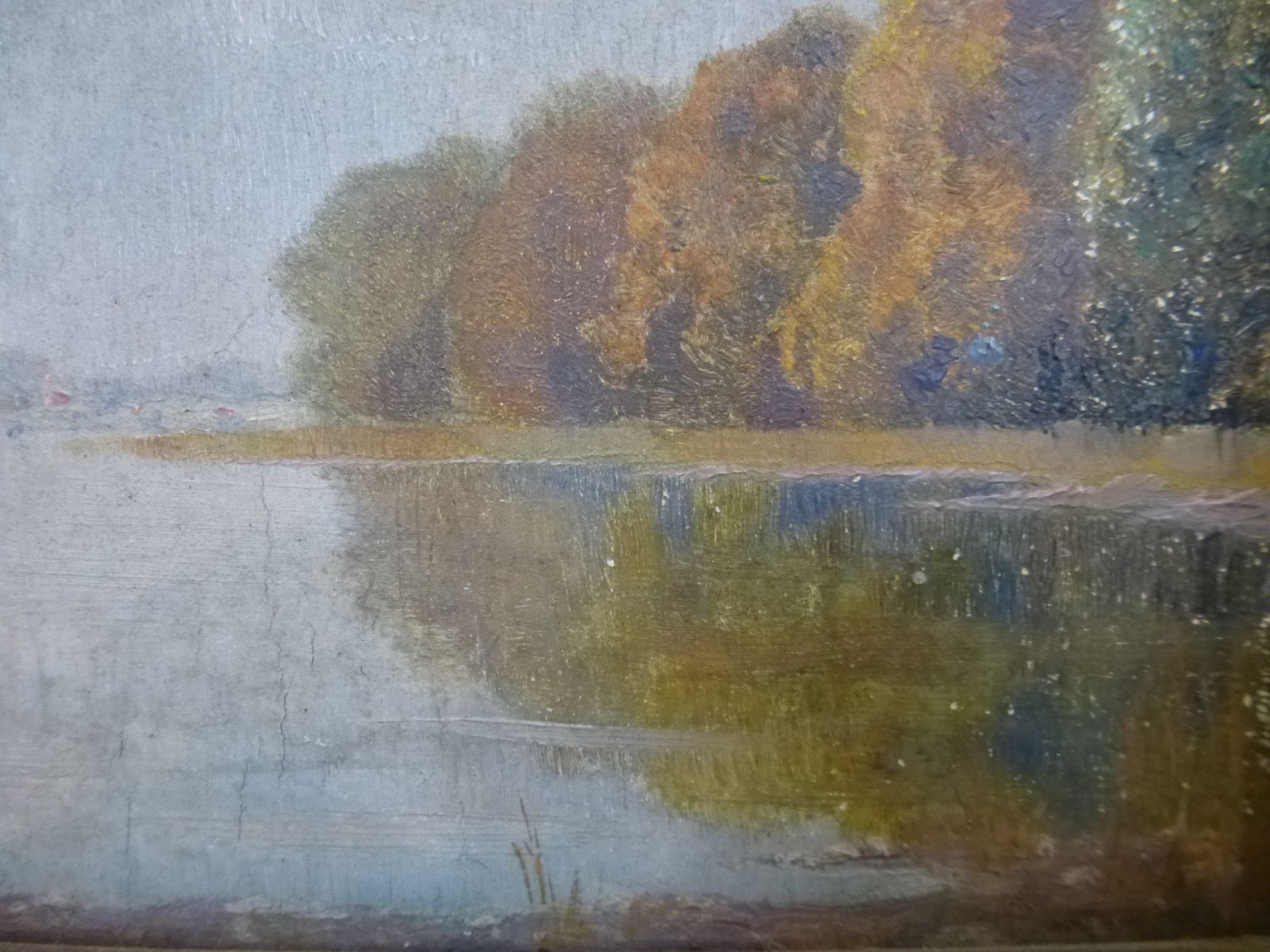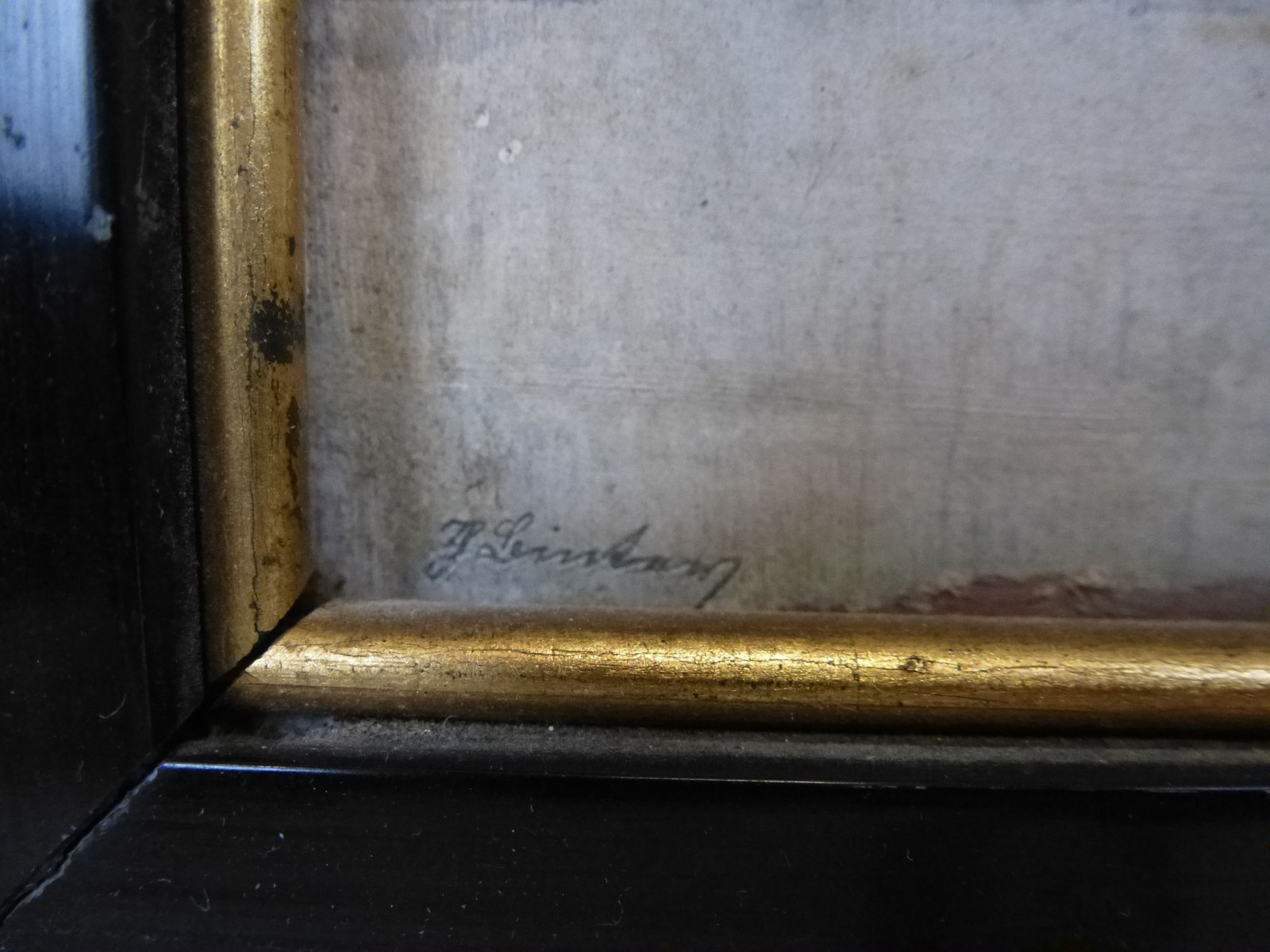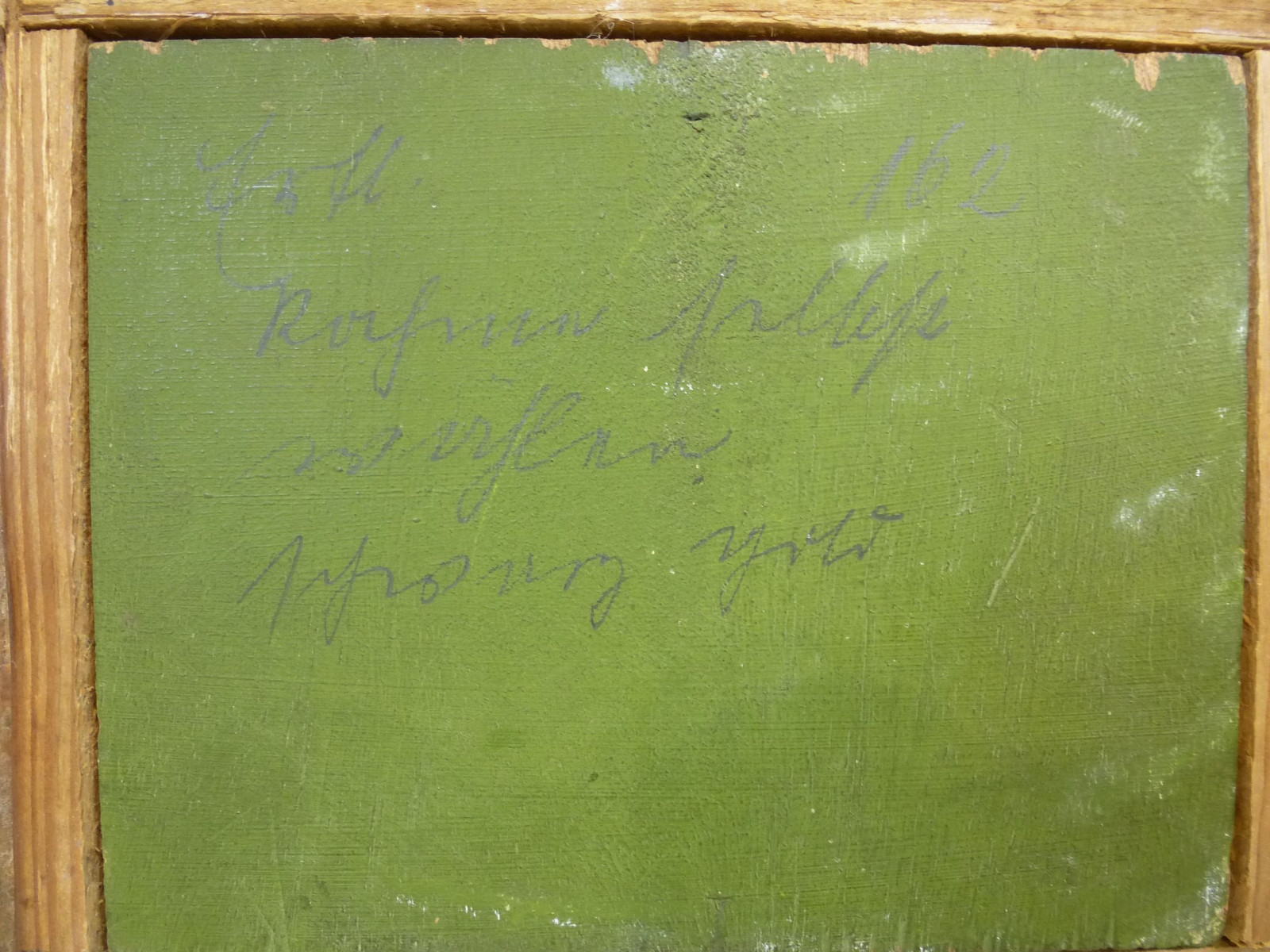 Das Gemälde weist Farbabrieb und Oberflächenverschmutzung auf.