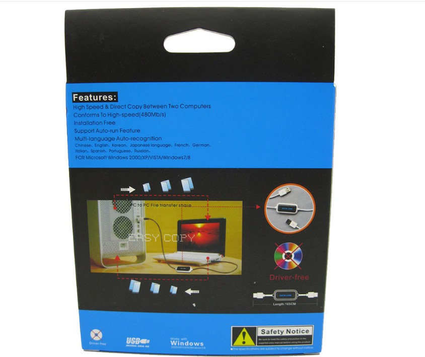 Description: USB 2.0 High Speed PC To PC Online Share Sync Link Net Direct Data File Transfer Bridge LED Cable Easy Copy Between 2 Computer USB 2.0 PC To PC Sync Data Link Transfer Bridge Extension Cable Male to Male Online Share Net Data File Transfer USB2.0 Cable High Speed USB 2.0 Computer PC Data Sync Link Transfer Copy Cable Free driver Ideal solution for sharing files between two non-networked computers, PC USB 2.0 high-speed compliant, easy to use, this cable offers the fastest and simplest way to transfer your files Transferring and sharing file within seconds, such as files and folders, program data files and settings E-mail and contacts Photos, music, and videos etc. Features: High Speed & Direct Copy Between Two Computers, Easy transfer PC to PC Conforms To High-speed 1Gbps Support USB 2.0, backward compatible with USB1.1, 1.0 Installation free Free driver, Plug-and-Play Support Auto-run feature No external power source needed Single cable solution for data communication Compatible with: Microsoft Windows 2000/XP/VISTA/Windows 7/8 Support Mufti-language Auto-recognition: Chinese, English, Korean, Japanese, French, German, Italian, Spanish, Portuguese, Russian. Cable length: 1.5M Package: 1 x USB Data Link cable