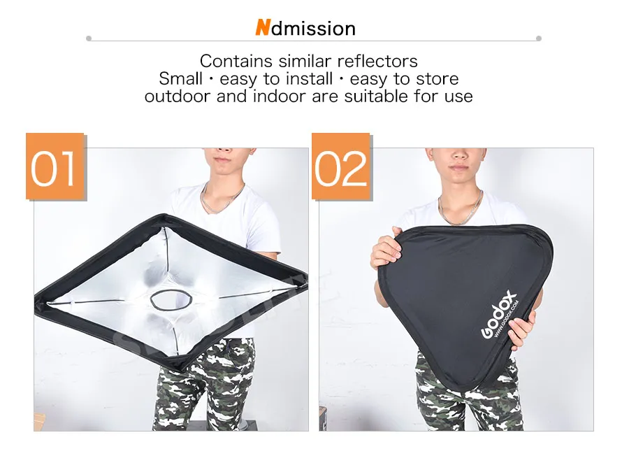 | Type : | Softboxes | | Brand : | Godox | | Compatible Brand : | Universal | | Softbox/Diffuser Shape : | Square/Rectangle | | Softbox/Diffuser Size : | 40x40cm | | Compatible Series : | godox AD200 AD200pro TT350 TT685 TT600 V850 V860 V350 etc |