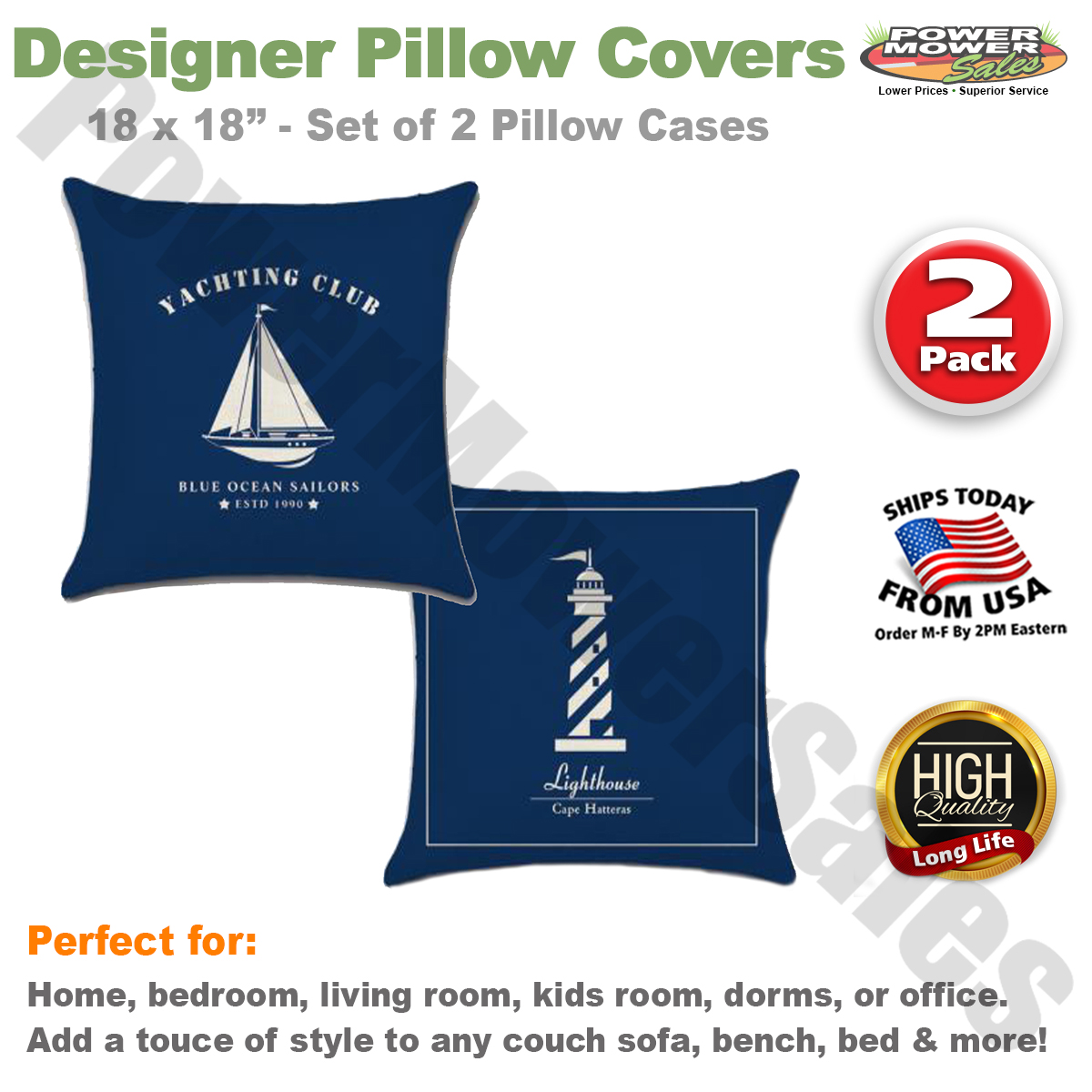 18" x 18" Blue Sailboat & Lighthouse Design is the Best Choice to Refresh the Look of Your Home!