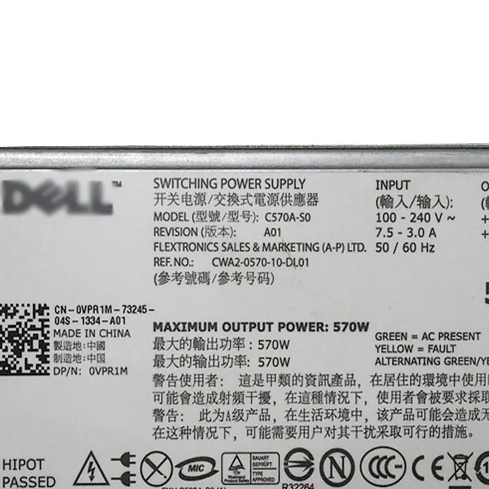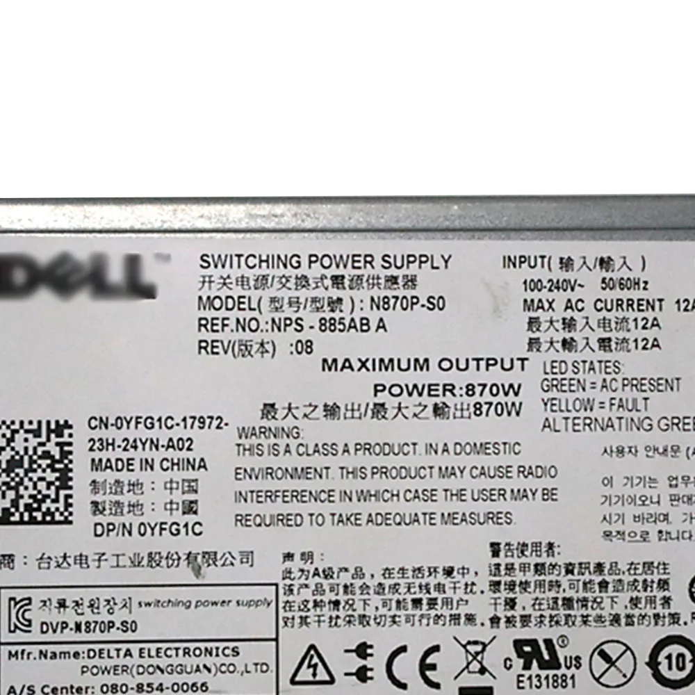570W/870W switching power supply C570A-S0 0VPR1M N870P-S0 NPS-885AB A 0YFG1C For Dell Poweredge R710 T610 Server Original