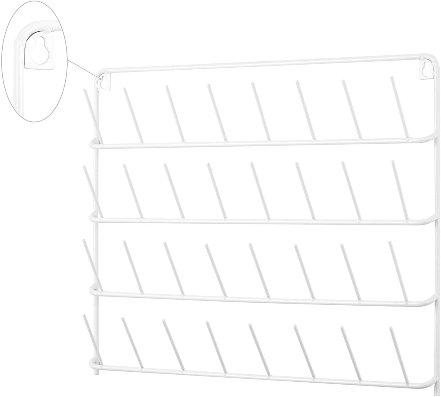 32-Spool Wall-Mounted Metal Sewing Thread Rack Holder with Hanging Tools White
