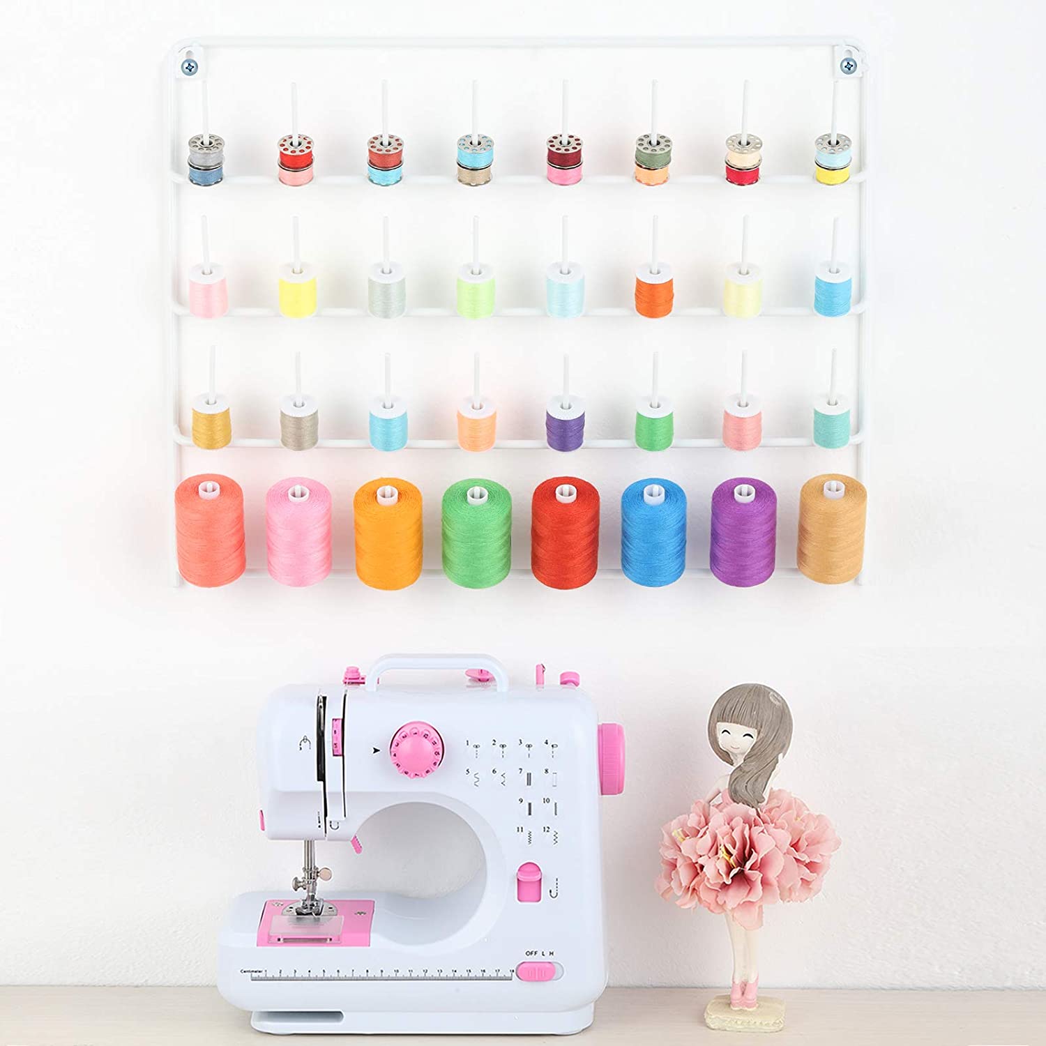 ⭐【Durable and High Quality】Our thread organizer rack is unique and is made up of superior quality metal which makes it sturdy and durable. In your sewing space, to set up one thread spool rack or several, which display all of colors of thread , so that you can easy to see and reach them when you sewing.