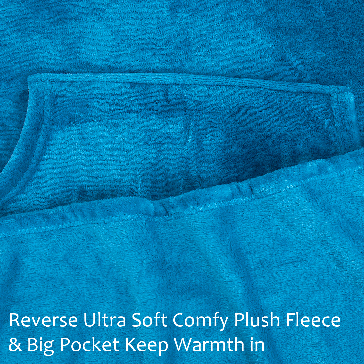 WEARABLE HOODED PONCHO BLANKET: 100% ultra oft luxurious plush polyester keeps you warm and comfortable. Roomy space for you to walk around and rest indoors or outdoors. Loose fit for casts or bulky sweaters underneath.