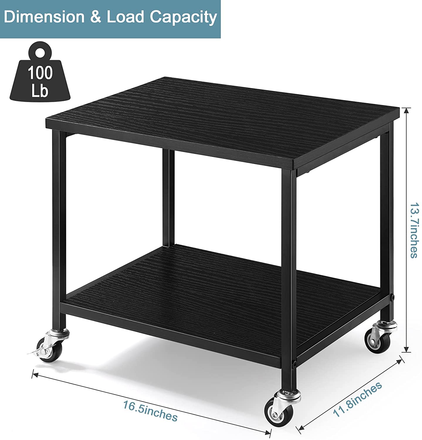 🤶Space-Saving Under Desk Design: Compact 2-tier printer cart can be easily placed under a desk. It takes less desktop space but enlarges storage space simultaneously. Appearance wise, it looks great as well since its pure black adds an attractive element to home office. Thus, it accommodates to most décor.