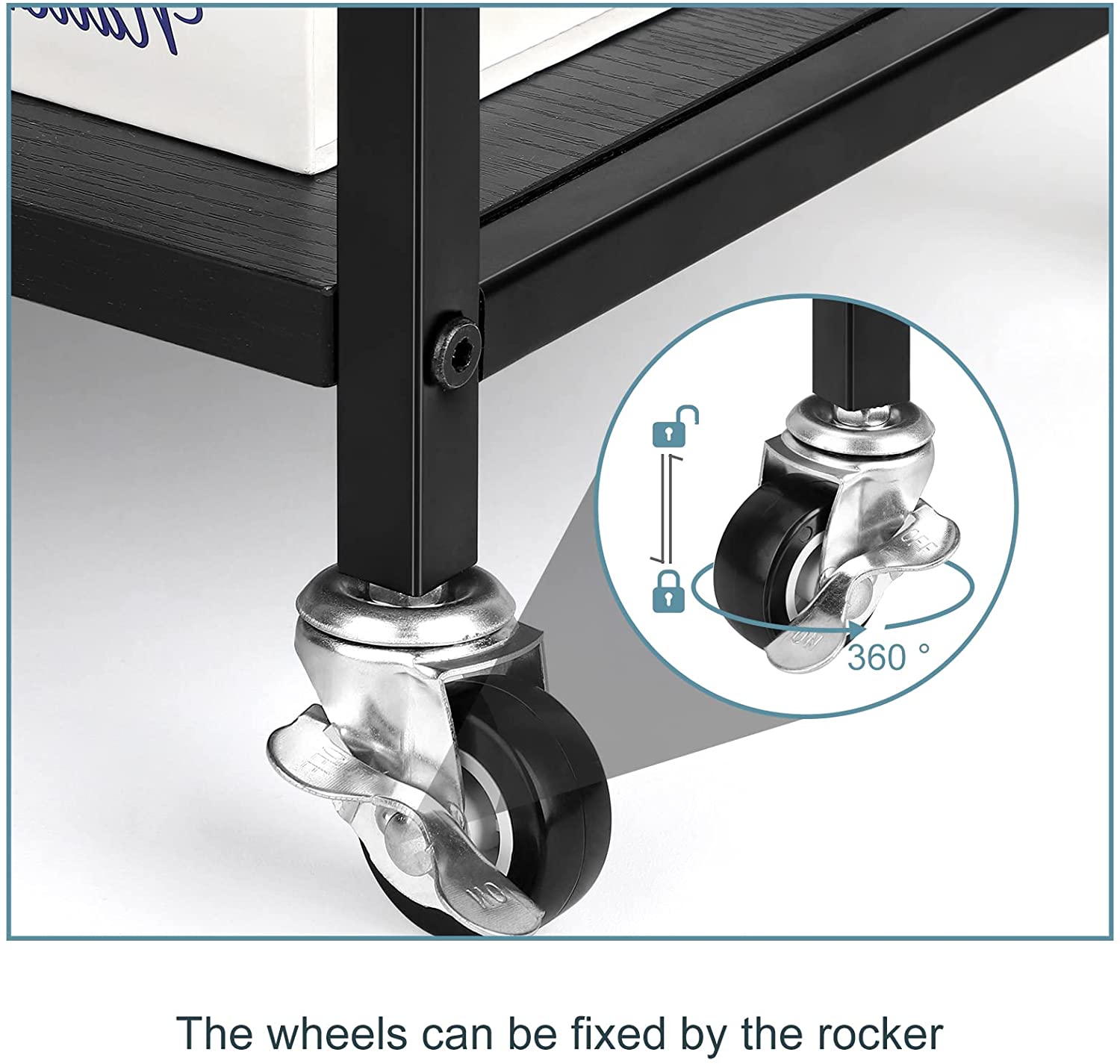 🤶360° Swivel Casters for Mobility: 360° swivel casters grants this rolling printer cart a noise-free mobility. Thus, it also automatically improves your working efficiency with less required transportation effort. It can be kept in position since 2 of its wheels can be locked with brakes.