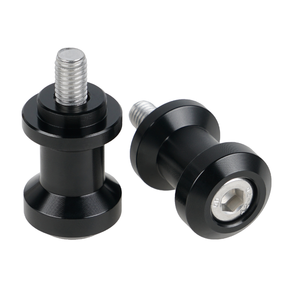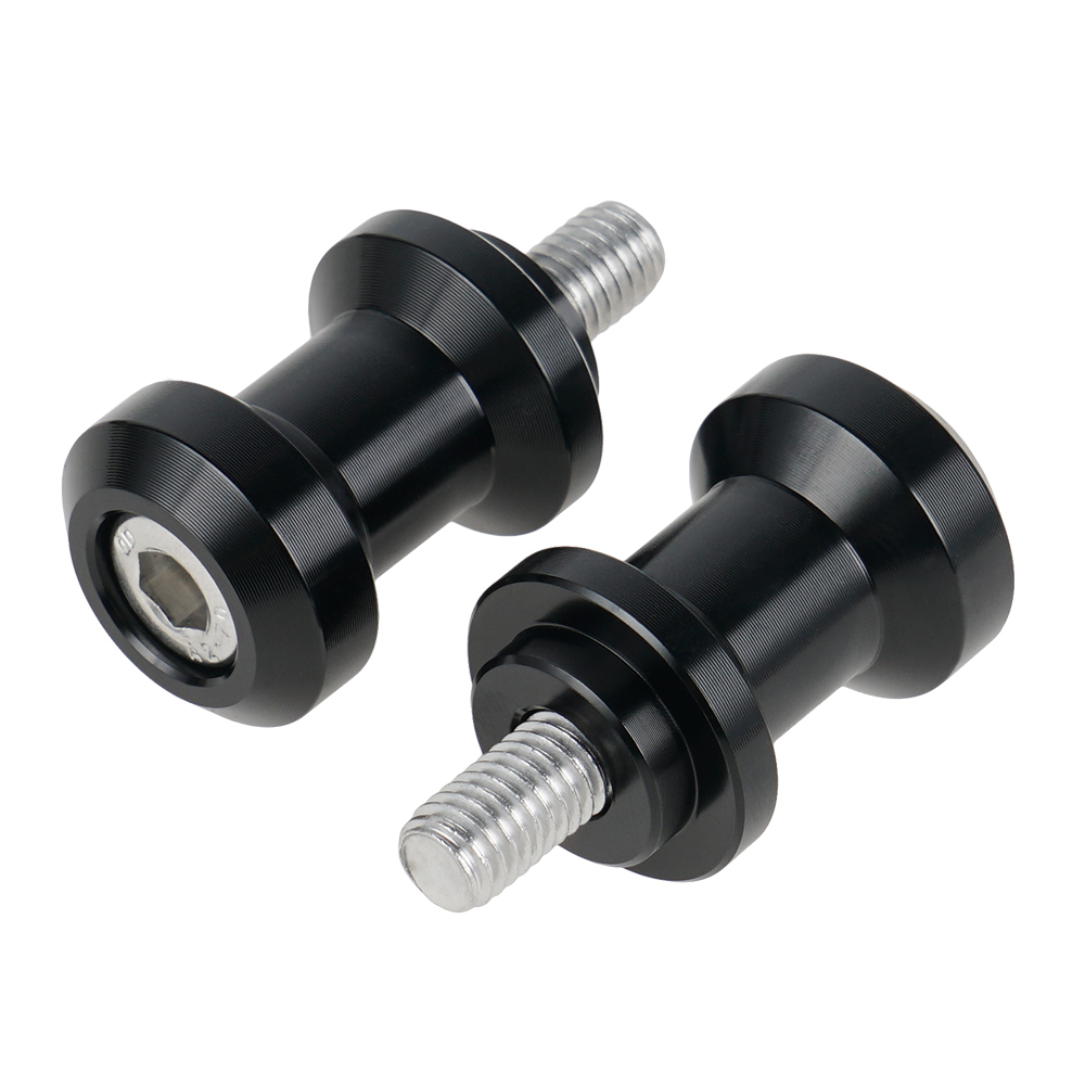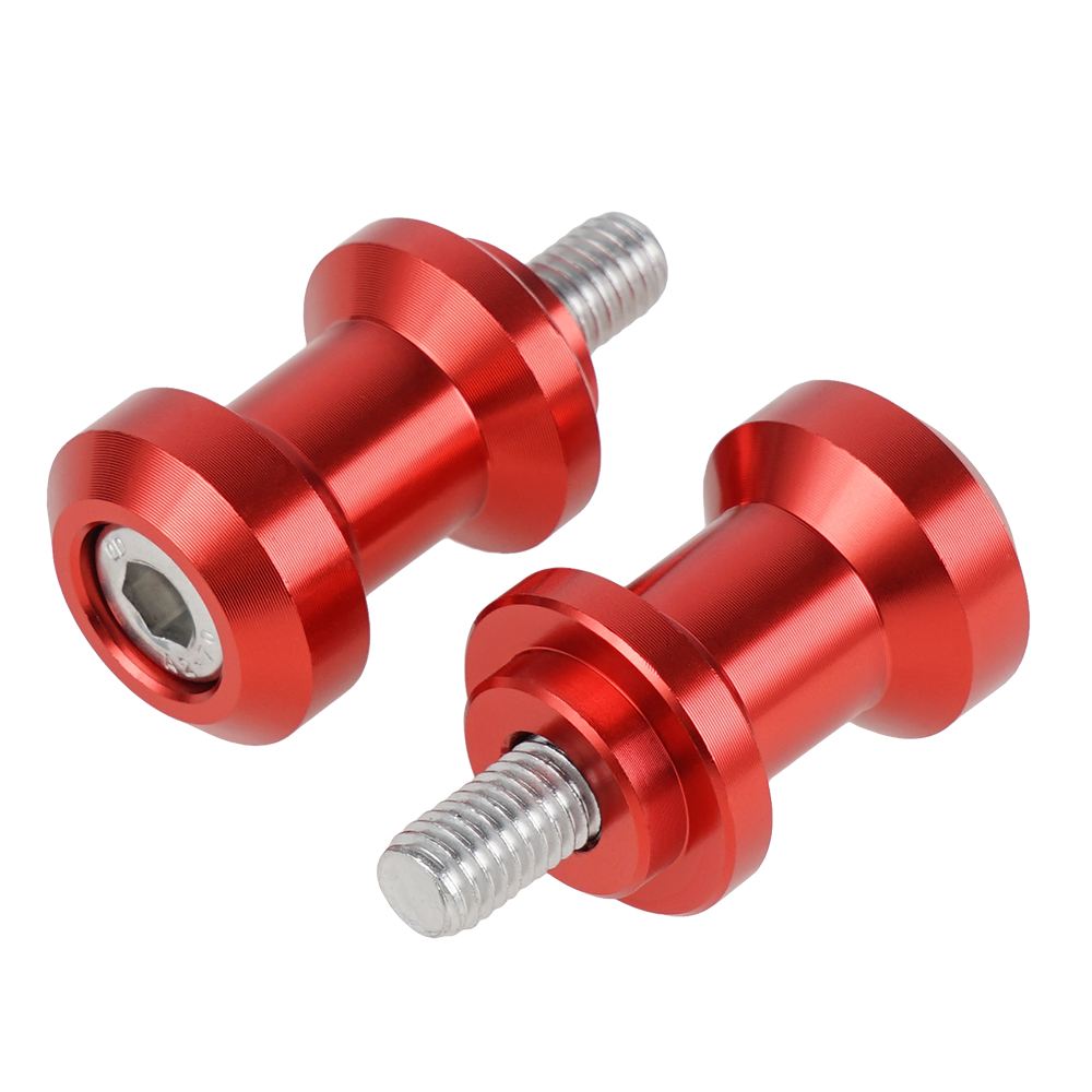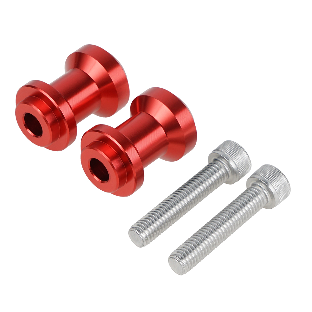 Product Details: -- Condition: 100% Brand New -- Qty: 1x Pair (Swingarm Spools & Bolts) -- Material: 6061-T6 Aluminum -- Bolt Size: (8mm) M8x1.25 -- Color: Red, Black -- Designed to work with all rear bike stands with "V" style lifts -- 100% CNC machined from billet aluminum -- Hard anodized for a protective finish -- Easy to install Important Note: Please make sure to properly measure your bolt hole size before ordering! Fitment: