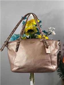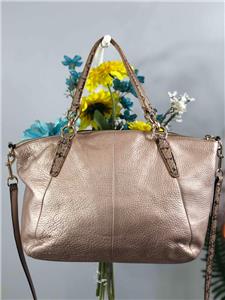 COACH Madison Small Kelsey Beige Metallic Leather w Exotic Trims Satchel Bag