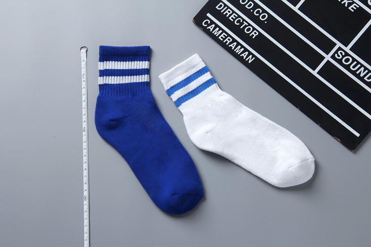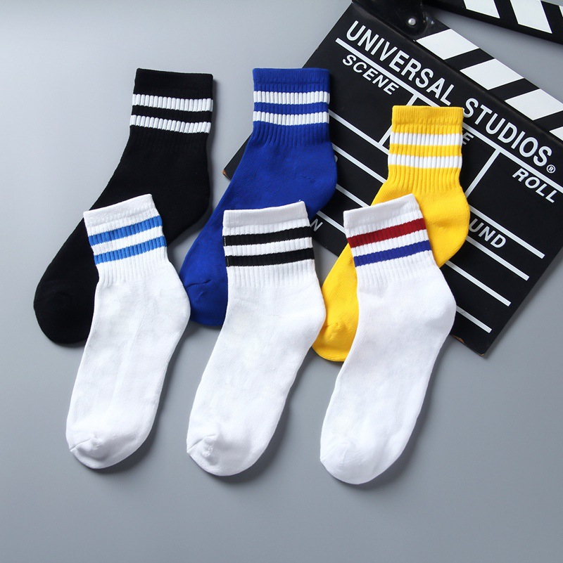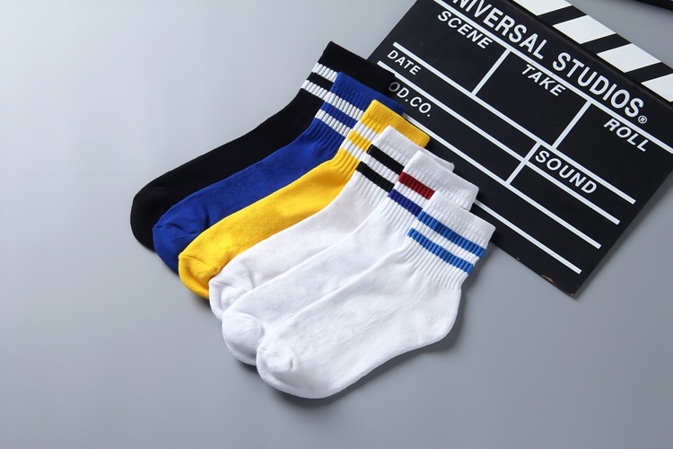 Men Striped Mid Calf Sport Socks Breathable Fitness Badminton Athletic Socks