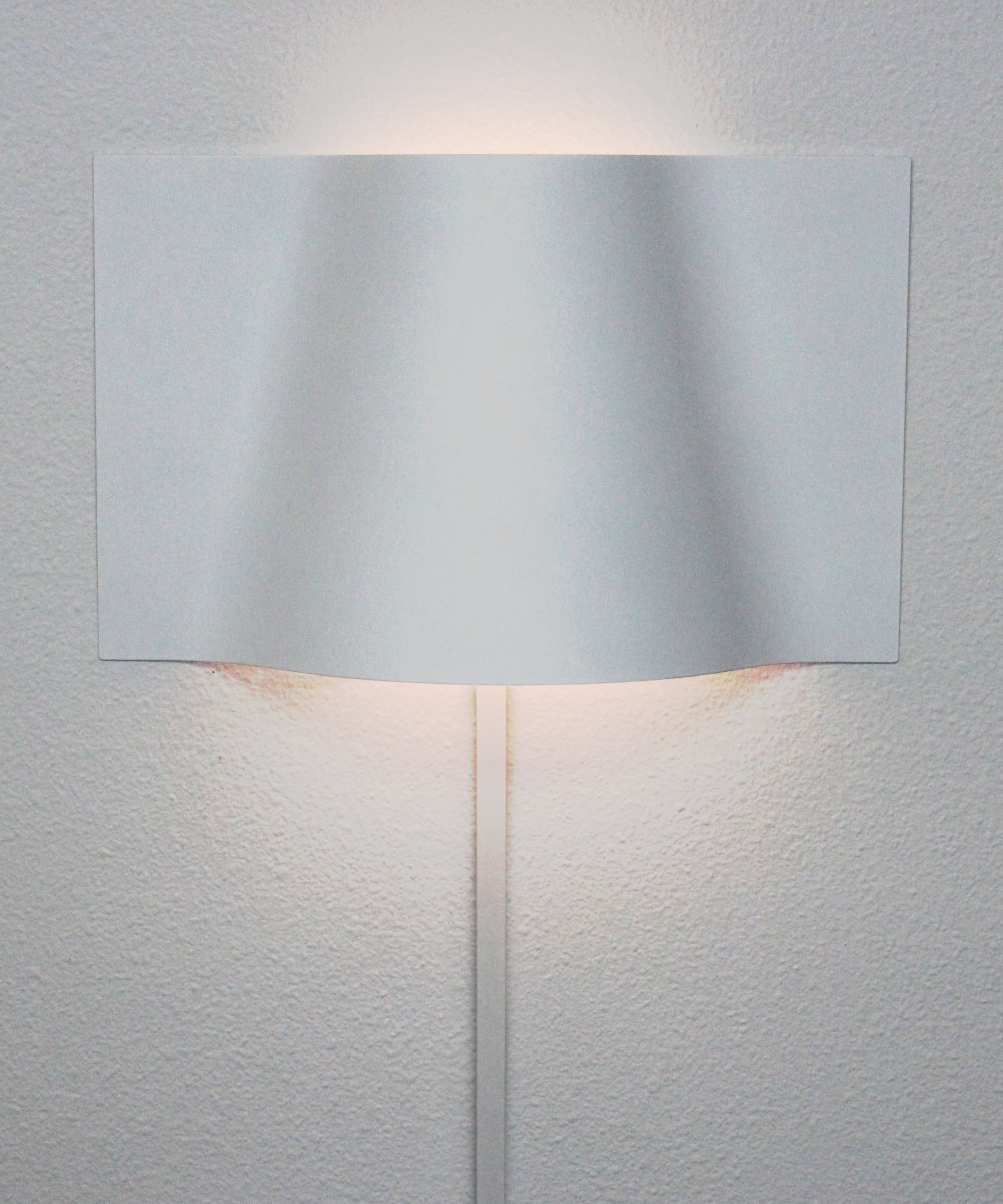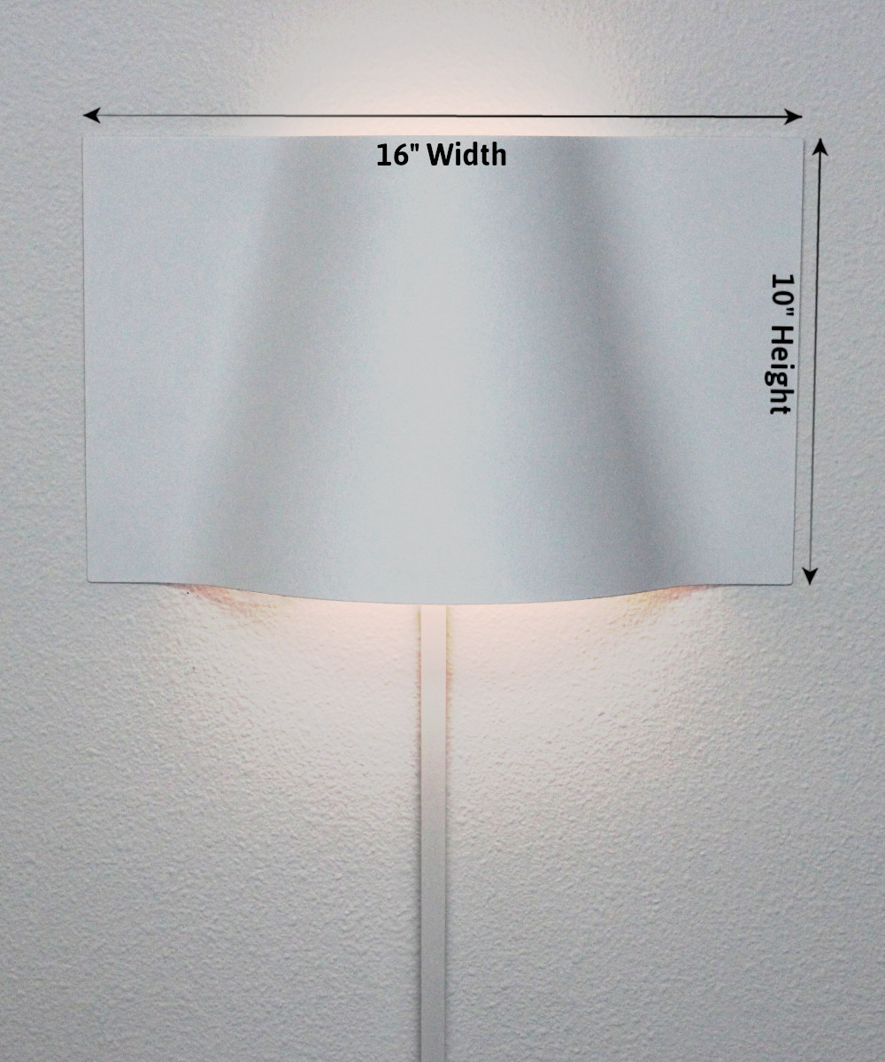 Transform a boring flat wall by adding the alluring "Surface Wave" wall light. This creative architectural light mounts easily on any wall. The Surface Wave light is unlike anything you have seen before. A real "statement" light that will define any room. The unique curved wave design looks like a lampshade is emerging from your wall. Sure to attract your guest's attention and improve your room's "cool-factor". Long 12' thin white cord blends into the wall is designed to easily reach your outlet. 40" cord cover included. Cord dimmer lets you control the light level down to 10% power. The Surface Wave plugs in so you don't need to pay an electrician to install. Paintable metal surface so you can match your wall color to create a more seamless architectural wave. Easy to move or take with you when you leave, so perfect solution for apartments, dorm rooms, bedrooms, living rooms and rec rooms.
