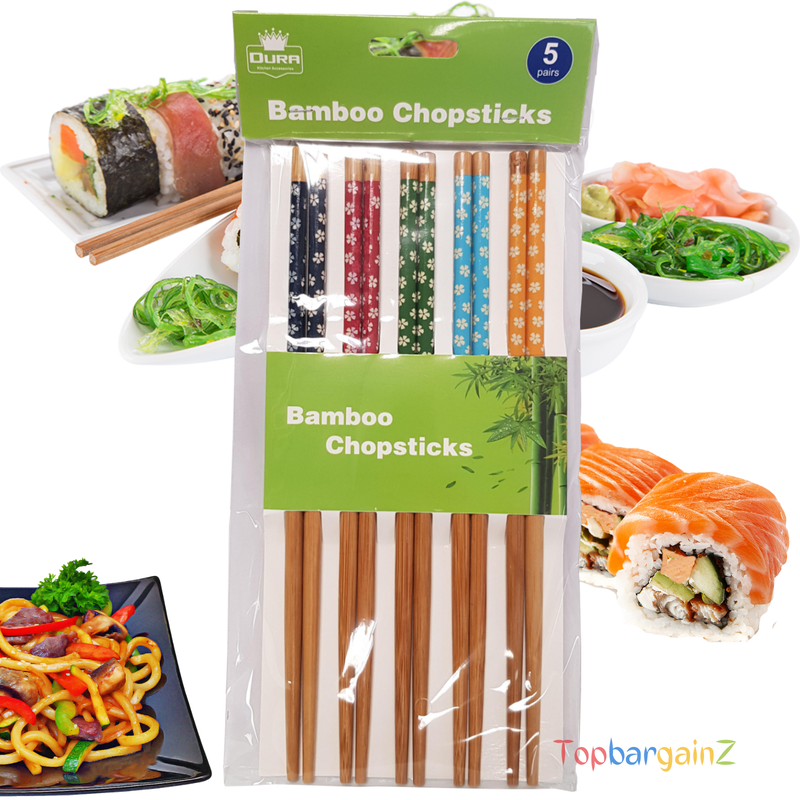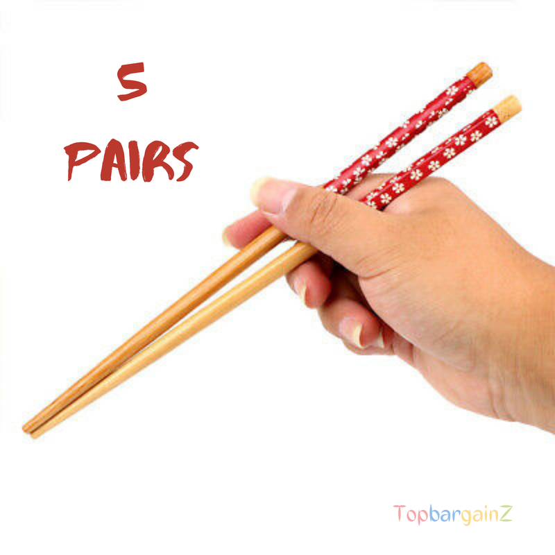 Sushi Chopsticks Oriental Chinese Food Bamboo Reusable 24cm Chop Sticks 5 Pairs