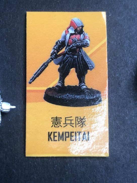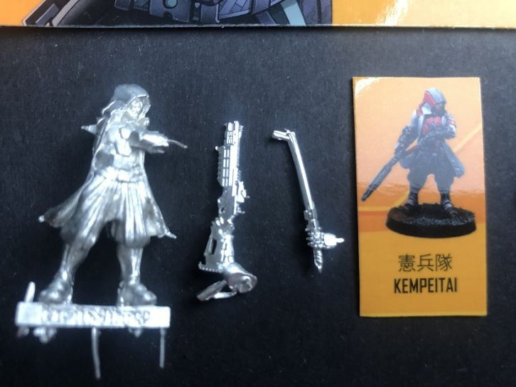 Kempei miniature from the Japanese Sectorial Army (JSA) Action Pack box for Infinity