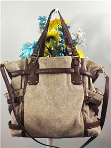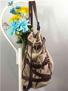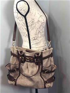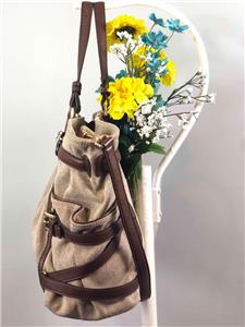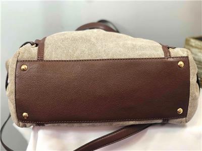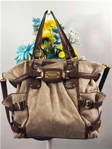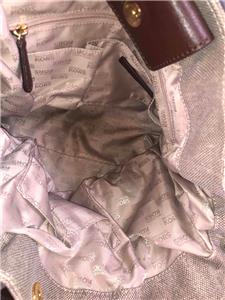 MICHAEL KORS Gansevoort Natural Hemp Canvas Mocha Brown Leather Shoulder Bag
