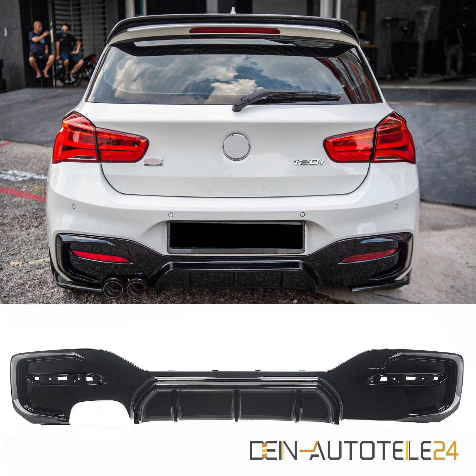 Heckdiffusor Auspuffblende Doppelrohr für BMW 1er F20 F21 LCI M Paket SCHWARZ