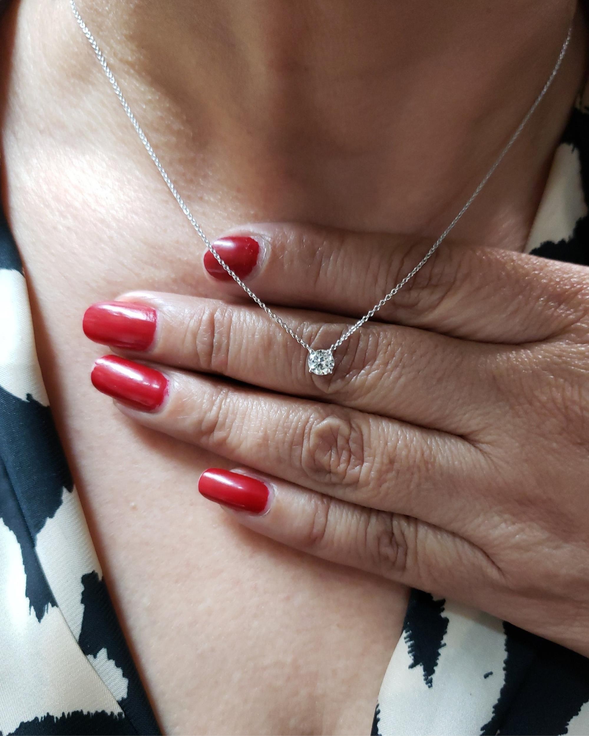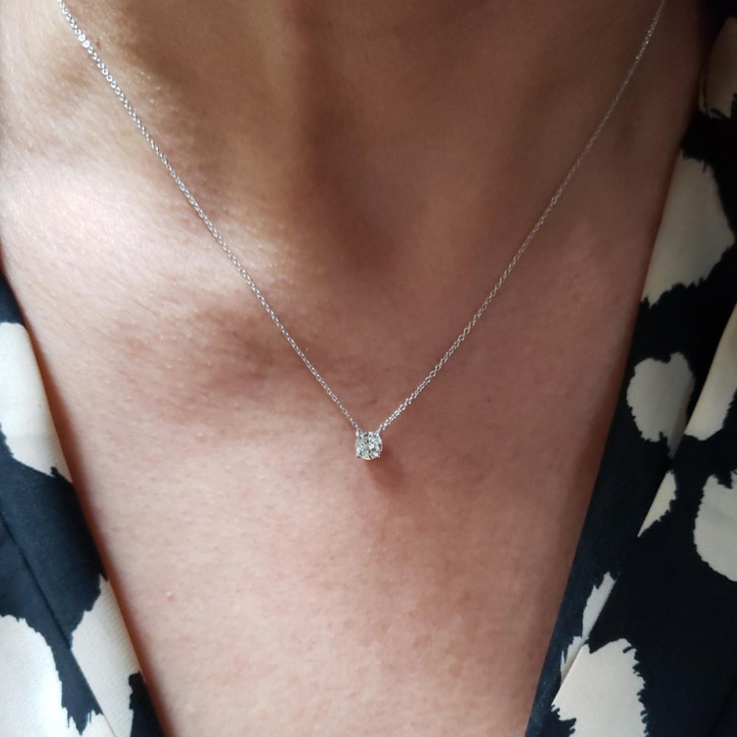 This is a beautiful VS1 0.40 Ct diamond pendant. The pendant and chain are both 14Kt Gold. This is a high quality diamond it is white and very shiny. Comes in jewelry box WE HAVE MORE BEAUTIFUL DIAMOND JEWELRY THAT YOU CAN SEE IN OUR STORE AND IS ALL AVAILABLE IN WHITE, YELLOW AND ROSE GOLD.