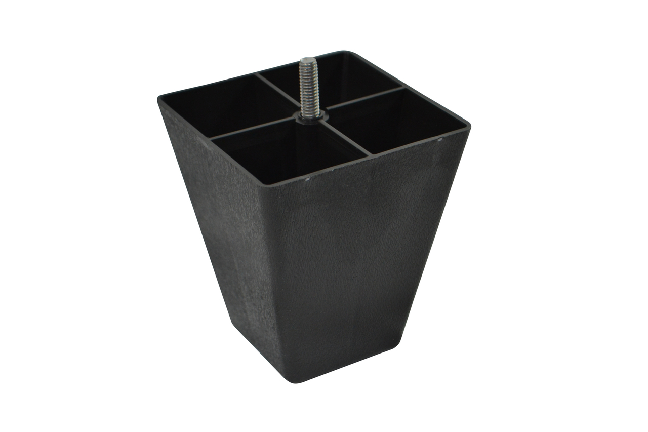 Black Plastic Pyramid Style 4.5 Inch Leg For Sofas and Recliners This leg is a modern style leg with a Black plastic exterior. This replacement leg is 4.5 Inches tall and 4 Inches across the top. Restore your couch, sofa, ottoman, or any furniture with our beautiful replacement legs. Please note this is for 1 leg order as many as you need.