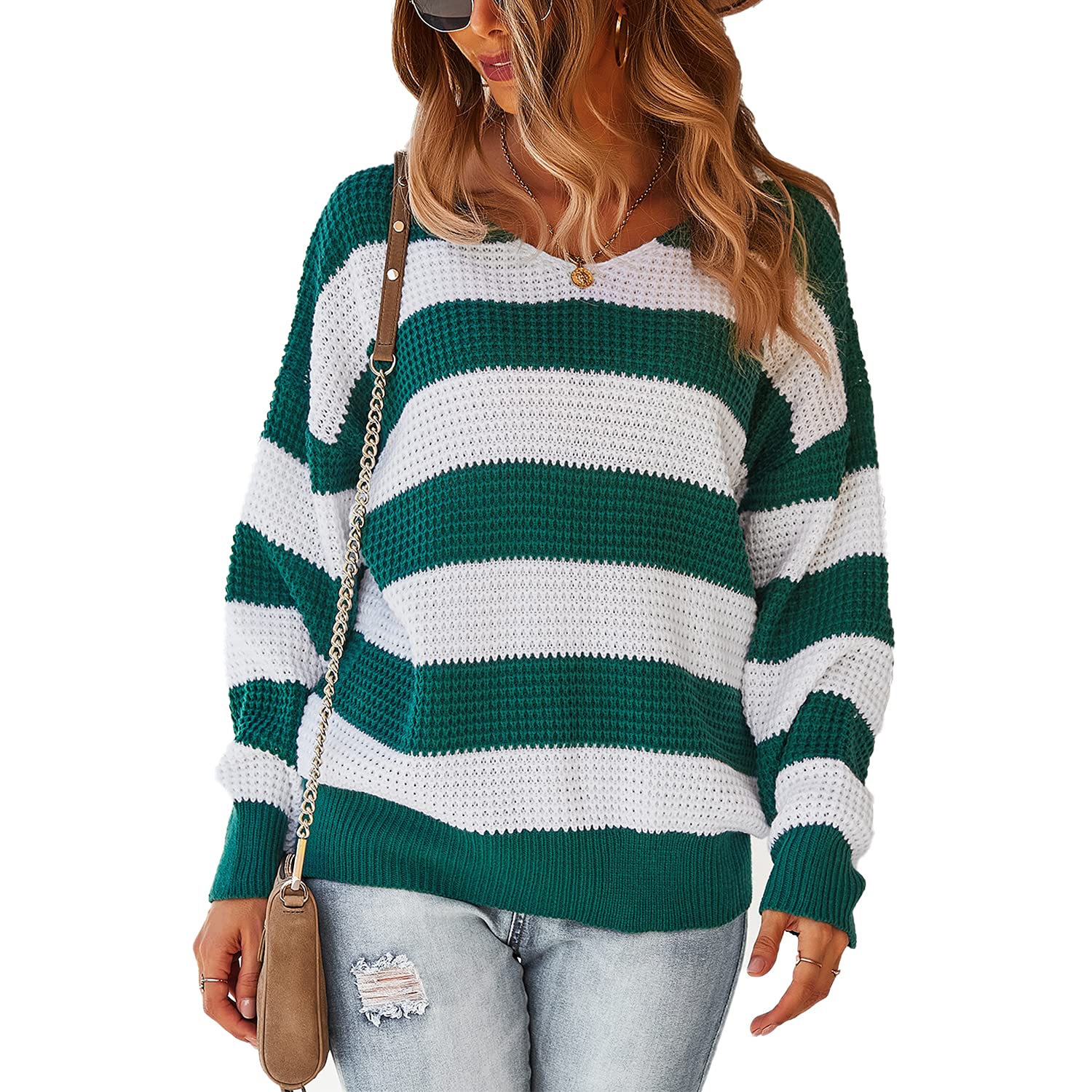 Women's Casual Long Sleeve Striped Color Block Chunky Loose Sweaters Fall - One Size