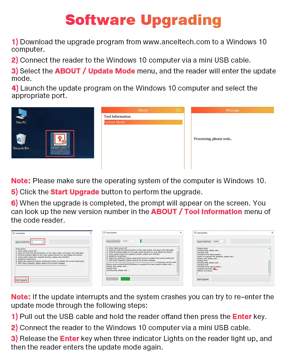 1) Download the upgrade program from Ancel official website to a Windows 10 computer.