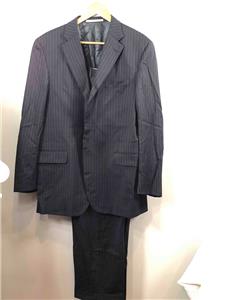 BURBERRY LONDON 100% Worsted Wool Dark Navy Blue Stripes Men's Suits Set