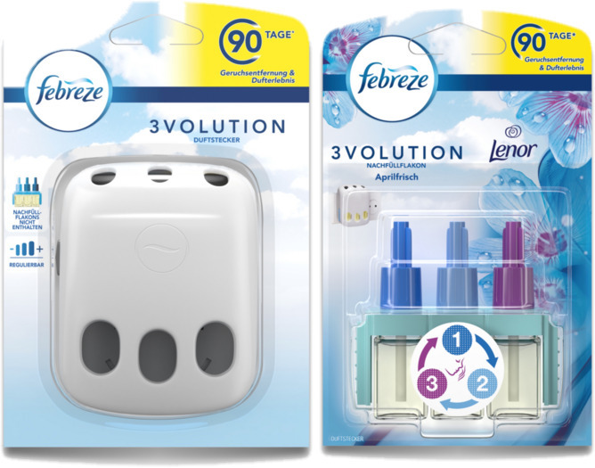 Lieferumfang: 1x Febreze 3Volution Duftstecker Gerät (unbestückt) 1x Duftflakon Aprilfrisch