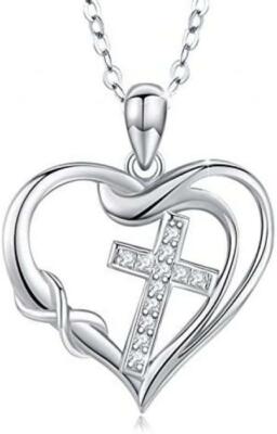 Cross Necklace Love Heart Infinity Pendant Necklace 925 Sterling Silver with Dainty Chain 18’’ Jewelry Gift for Women Girlfriend Valentine Mother Gift Graduation Gift