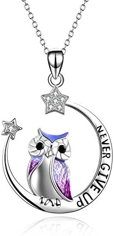 Owl Necklace Inspirational Jewelry Sterling Silver Never Give Up Owl Gifts Moon Star Necklace for Women Girls
