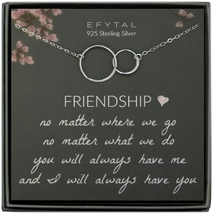 - The Meaning: No matter where we go, no matter what we do, you will always have me and I will always have you. Celebrate the beautiful bond of friendship with this simple and elegant necklace. For any bff or special lady in your life that you love like a sister. Let her know that whether you're faced with distance, loss, struggle, or disagreement, your hearts are intertwined for eternity, just like these infinity circles. A perfect birthday present for your bestie, or for bridal party in wedding.