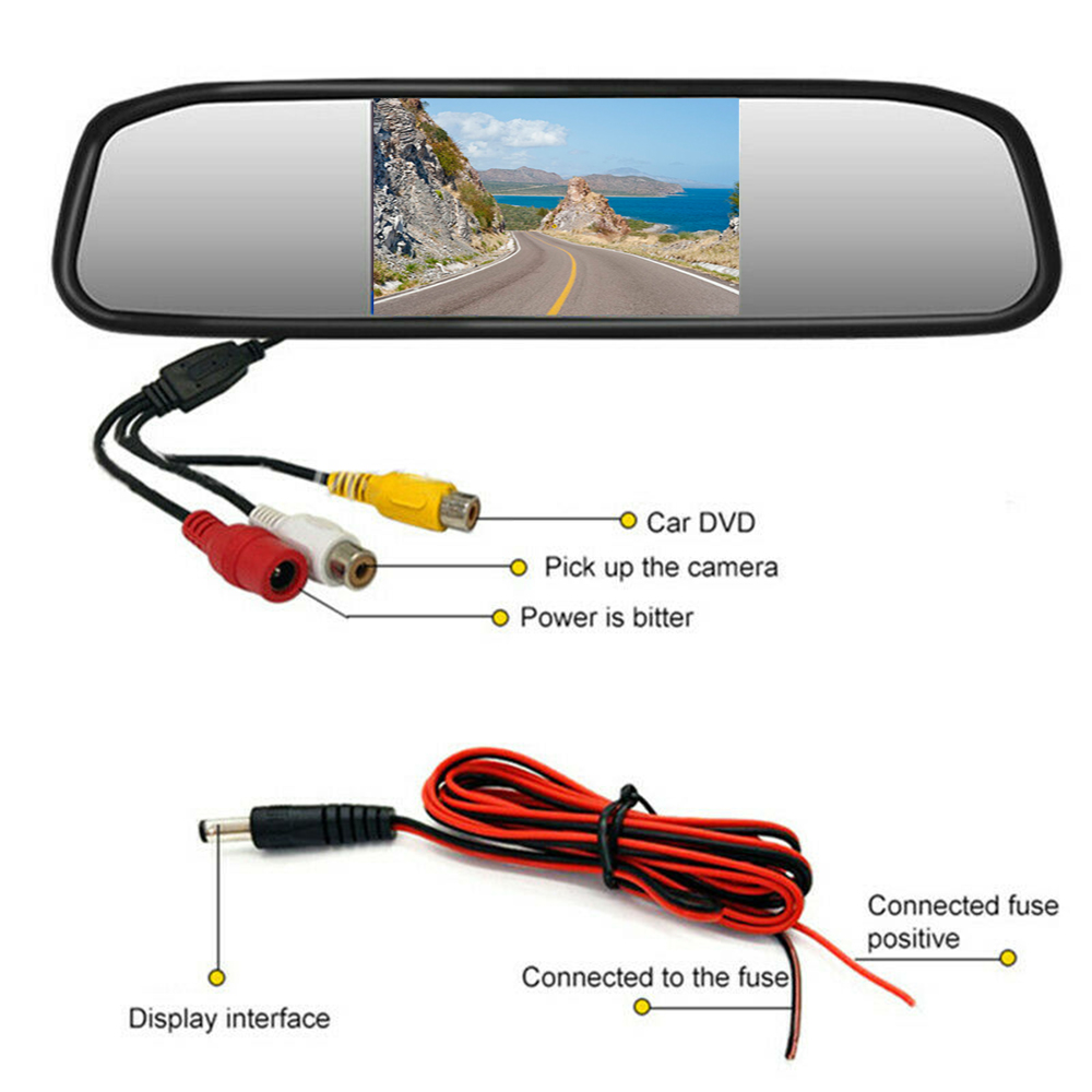 * 4.3 "TFT LCD - monitor. * high resolution photos: 480 * 272. * 2 video input White video cable connects to car rearview camera, yellow is connected to a DVD or VCD. When parking the car, the rearview image appears on the screen automatically. * so, i - menu buttons, Brightness and Contrast / Hue / language is adjustable. * It supports DVD Rental, VCD, camera and other video - equipment. * easy installation without affecting any - any part of the machine: just clip on the texts of the mirror. * Easy installation, no damage to any part of the machine, a clip on the original mirror * No audio input and output.