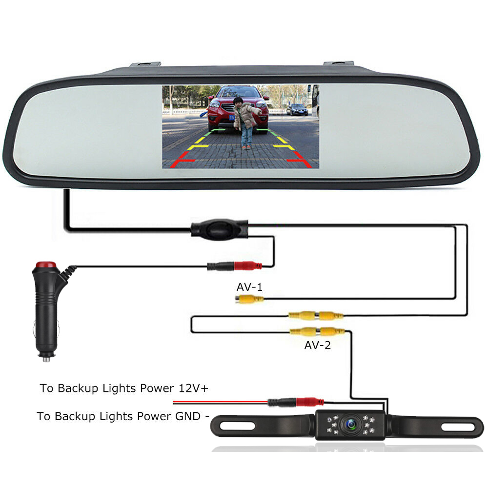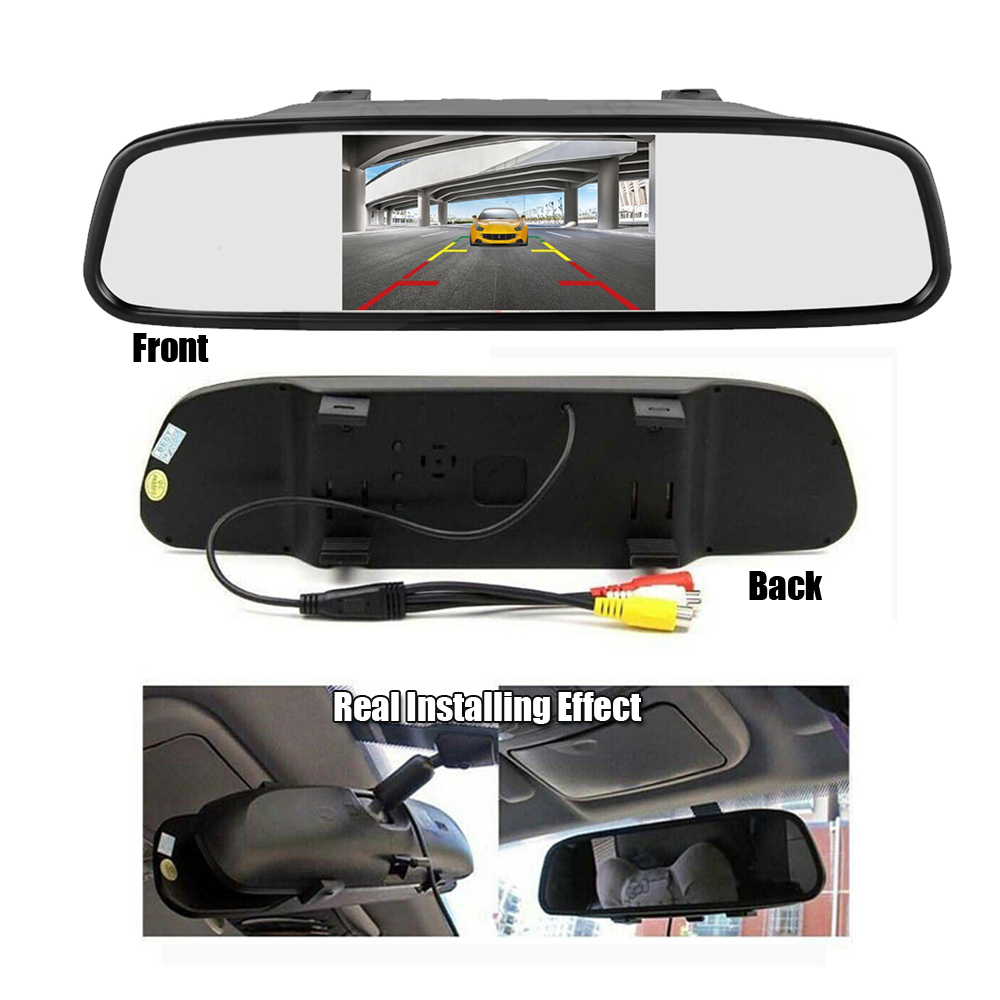 iPoster HD 4.3" Car Mirror Monitor with Waterproof Night Vision US License Plate Rear View Camera Backup Parking System with switch Car Charger For Plug and Play Kit