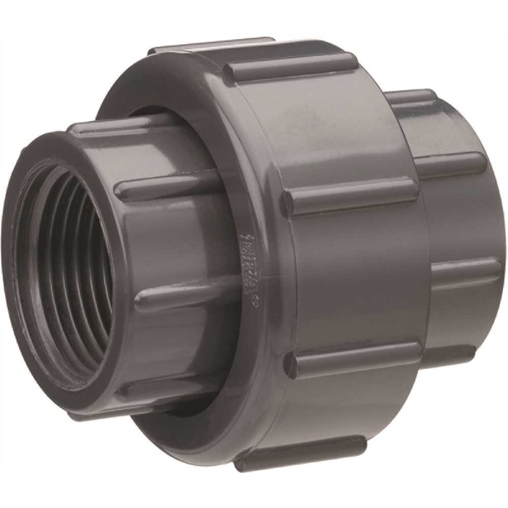 Homewerks 1-1/2 in. Sch. 80 PVC Threaded Union is used to join lengths of pipe together. Use with both Sch. 40 and Sch. 80 pipe. Rated at 150 psi at 73°F. Complies with ASTM F1498.