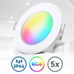 RGBW-LED Einbauleuchten, 5er-Set mit Fernbedienung - Kunststoff / weiß - inkl. 5 x LED 4,8W 450lm 3.000K - Lebensdauer 25.000h, Ra>=80 - inkl. RGB-LED - dimmbar, starr, inkl. Fernbedienung, Farbprogramme und Lichteffekte wählbar, inkl. Timerfunktion, inkl. Nachtlicht - IP44 - 92x45mm (DxH) - Einbaumaße: 70x50mm (DxH)