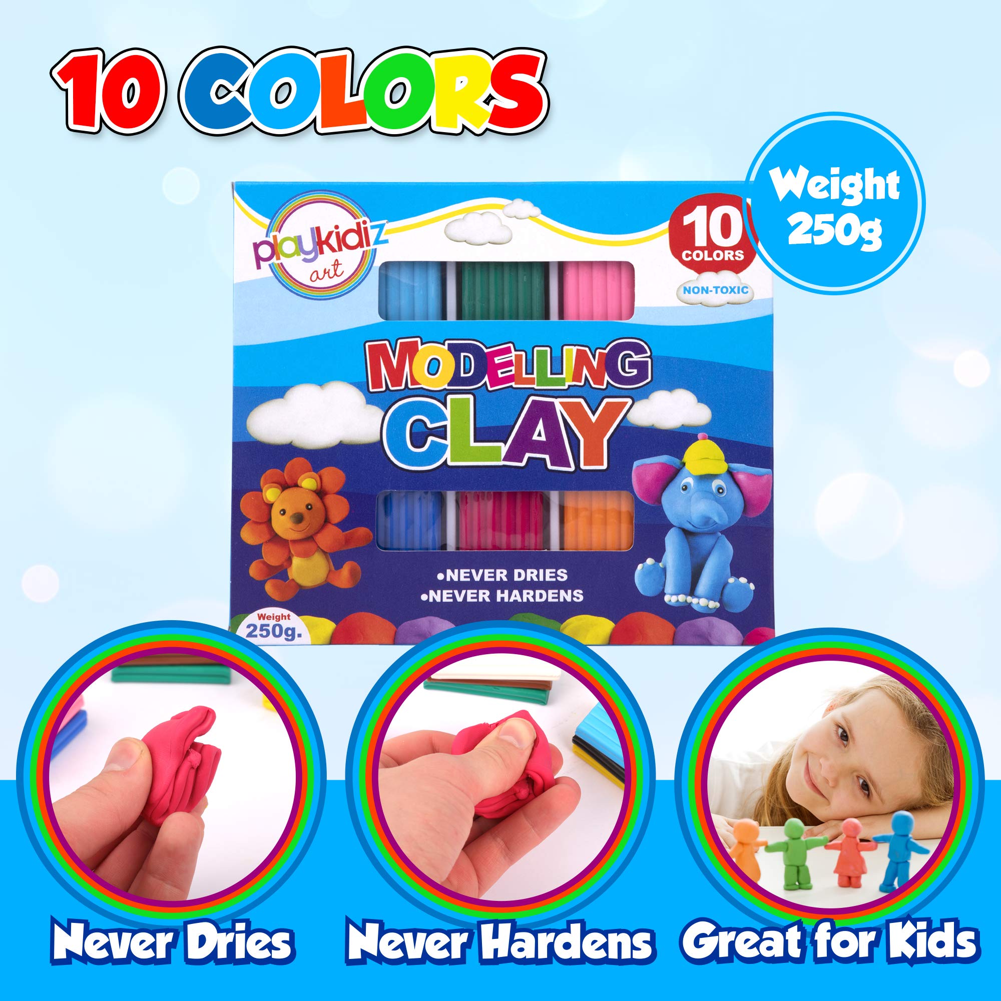 - NEVER DRIES: The clay is easy to shape, bend and stretch. It also never hardens leaving it fresh from simples shapes the next amazing figure your kid will create!