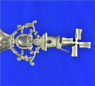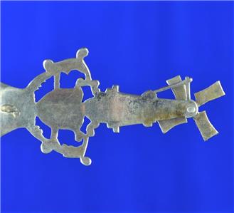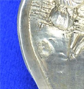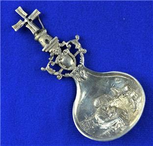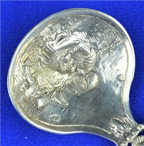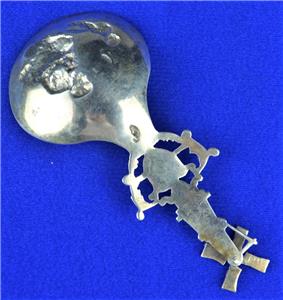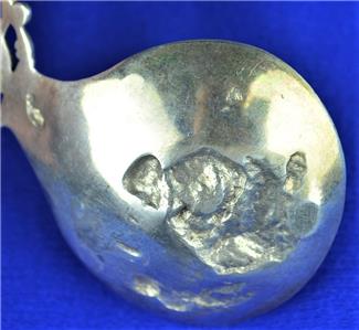 Offered for Sale is this Beautiful Dutch Spinning Windmill Hallmarked Spoon with Mother & Child design in the bowl. The spoon has the Lion Passant 2 mark indicating .833 Silver, an A indicating the year 1910 and a makers mark that I have been unable to identify (looks like ..VE). This .833 Silver Windmill Spoon would make a Great Addition to any Antique Dutch Silver Collection.