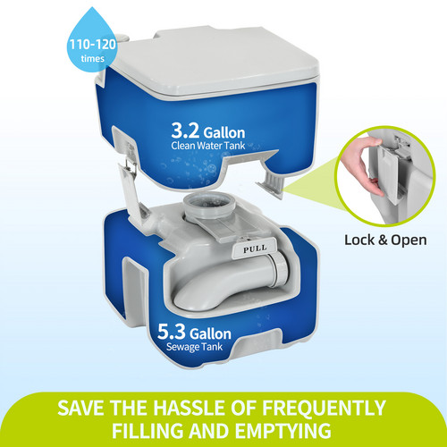 Large capacity (5.3-gallon sewage tank)can satisfy the whole family's hygienic needs during family travel.