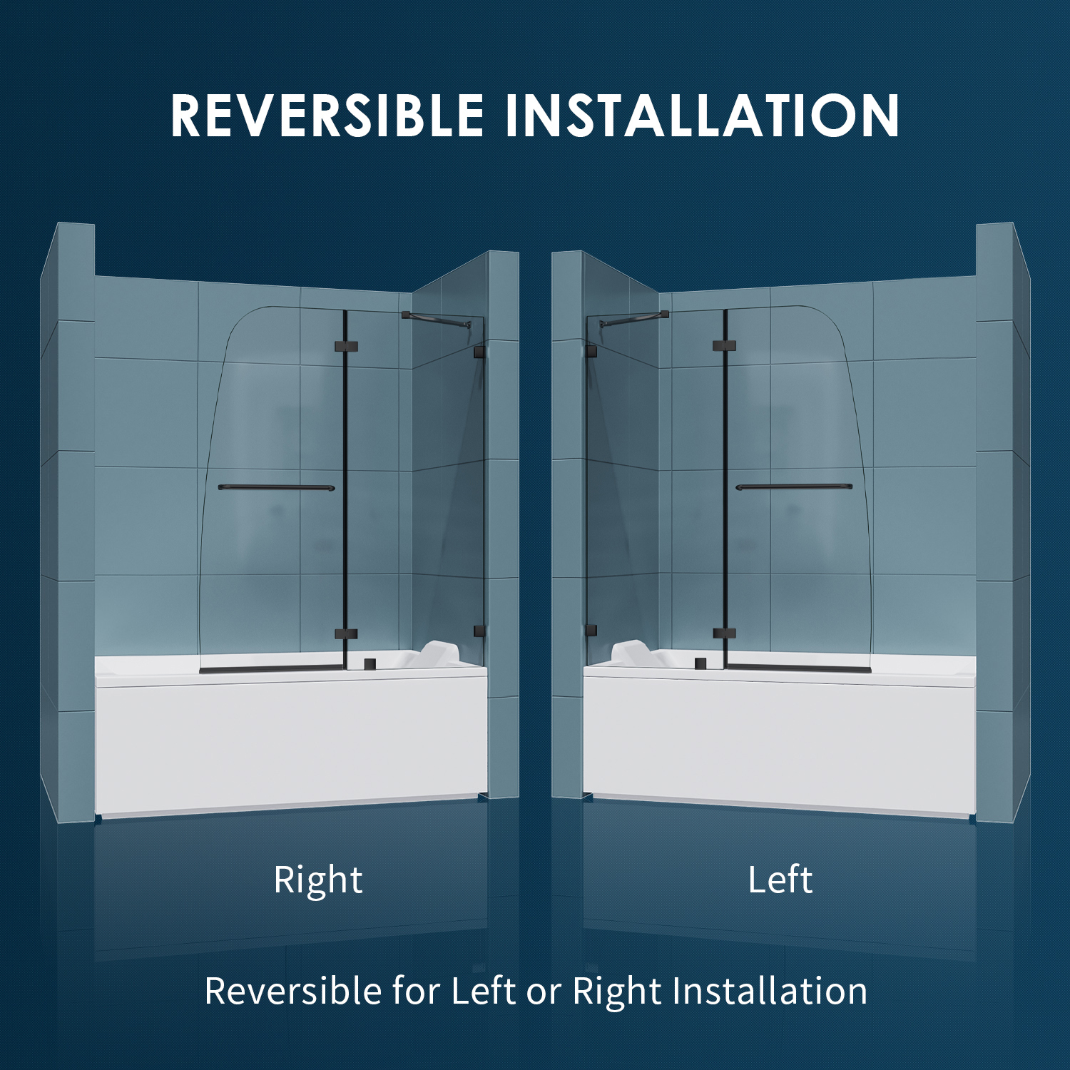 ♥-Tub Door Size: 48 in.W x 58 in. H, stationary panel width: 24 in.W. ♥-Matte Black Finish ♥-Reversible for right or left door opening installation. Suitable for installation on any straight bathtub ♥-Frameless Hinged Shower Door: Includes one stationary panel and one swing panel that can rotate almost 90 degree, get wide walk-in range while complete opening ♥-5/16 in. Shower Glass Panel: 8 mm thick heavy glass instead of others 6 mm, makes solid and larger than expected. Certified by ANSI so safe to use ♥-Support Bar: Installed with hinges and support bar, can fix 2 glass panel more firmly, also smooth to swing glass panel ♥-Towel Bar: Includes one long towel bar to put your clothes or towels, also can hold easily to swing bath door