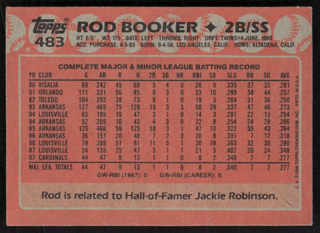 | 1988 Topps #483 Rod Booker Rookie St. Louis Cardinals |