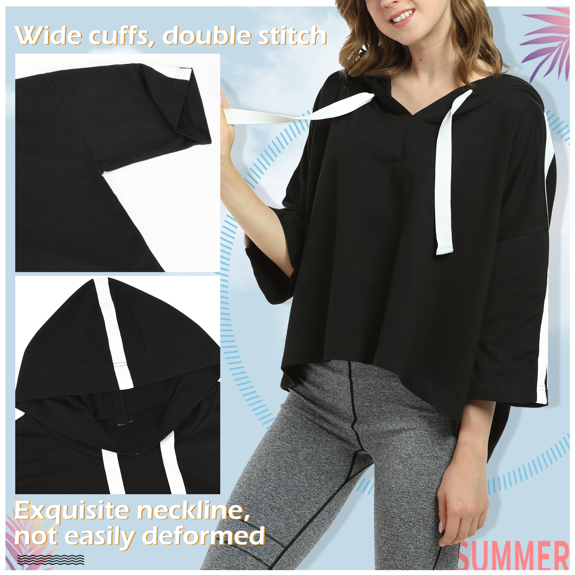 The fabric on this crop top is lightweight and soft, designed with 3/4 sleeve which is wonderful for warmer weather. You can wear a tank under it on slightly cool days.