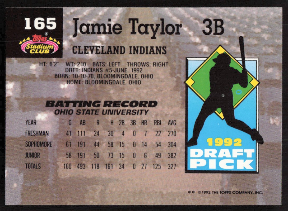 | 1993 Topps Stadium Club Murphy Draft Pick #165 Jamie Taylor Rookie Cleveland |