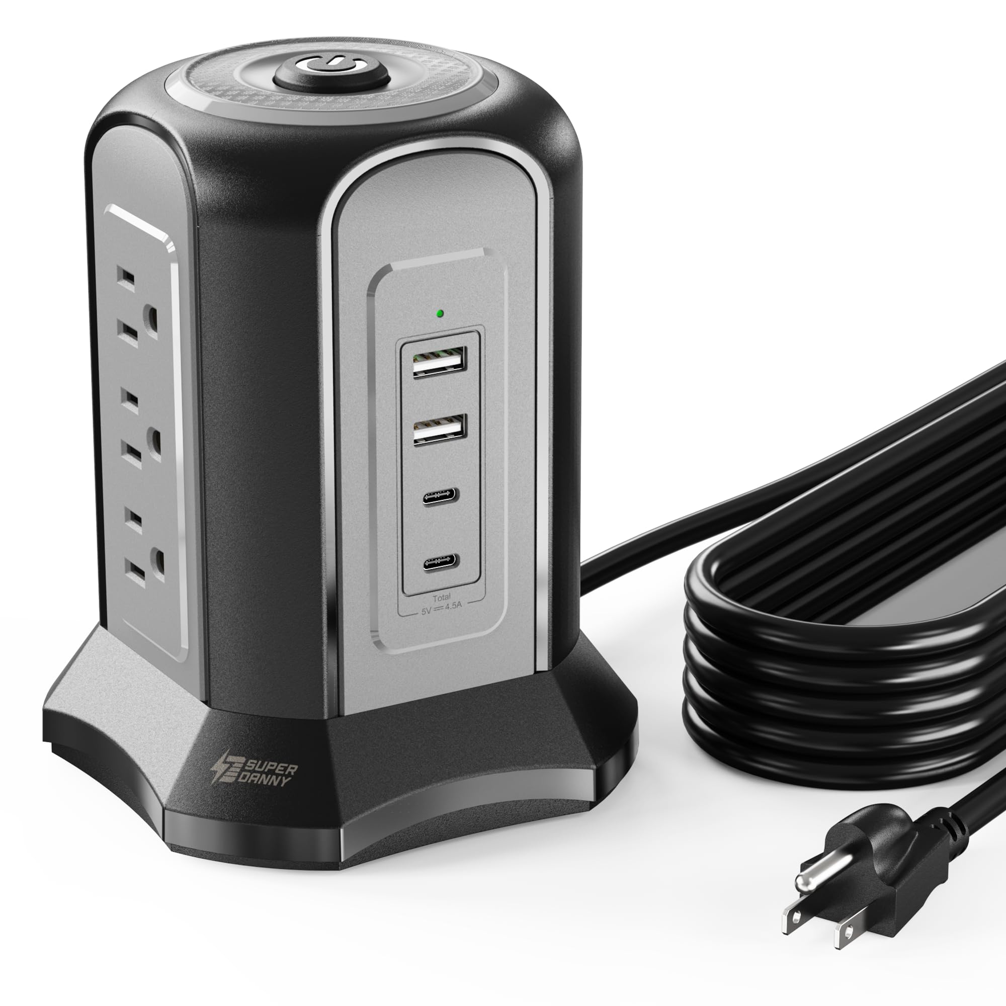 Power Strip Tower Surge Protector, SUPERDANNY Desktop Charging Station, 10 Ft Extension Cord, 9 Outlets, 4 USB Ports, 1080 Joules, 3-Prong, Grounded, Multiple Protections for Home, Office, Black