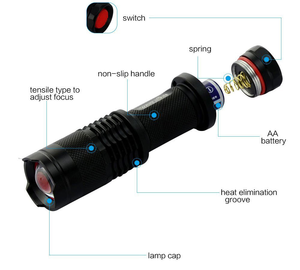11. Battery required: 1.5v AA or 3.7v 14500 Battery (not included)