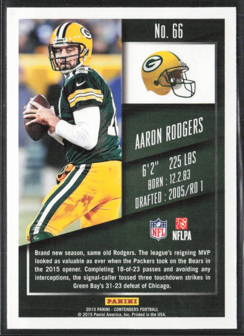 | 2015 Panini Contenders #66 Aaron Rodgers Green Bay Packers |