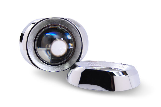 E55-R: With the W211 E-class replaced, we just couldn't let this classic shroud design go. This design is inspired by the Mercedes Benz E55 AMG. A combination of smooth chrome surfaces coupled with a textured face make this shroud simple and attractive. Call it minimalist, we call it just right! In Comparison: Don't make the mistake of thinking all shrouds are created equal. Even though less expensive alternatives may be available elsewhere: Morimoto shrouds are made from the highest quality plastic and have by far the most durable metalized chrome finishes. The cheapo's out there are flimsy enough to deform from the heat just a 35W HID bulb, and their chrome finish easily flakes off. A or B: At our shop, we're also meticulous with quality control. If a shroud has a minor factory defect; we sell it at a discount as a "B stock" unit - which is perfect for budget retrofits or when painting them is part of the plans. If you won't settle for anything less than perfect and plan to leave them chrome; go for the "A Stock" Shrouds. Mounting: Centric Rings are not included by default, but are highly recommended to improve ease of installation on many projectors. The Centric Rings are simple reducers that clip into the shroud to reduce the inside diameter, making them more of a "press fit" onto the lens holder of the projector. JB Quik Weld is also recommended in order to prevent the shrouds from vibrating loose over time. LED Halos: Are a unique and effective way to further customize the look of your projector retrofit. The Profile Pivot (switchback) and Profile Pixel (RGB) systems are easy to mount on the front of your shrouds, are reliable, and of course awesome looking. To determine which size is best for you - check out the size-guide in the images above. Trimming: Please note that trimming shrouds is a common task when retrofitting. Whether required to clear part of the projector, or fit within the geometry of your headlight housing; it's normal. Luckily, they're made of plastic - making that easily possible. We recommend a Dremel hand tool with EZ Lock cutting wheels to make the job easy.