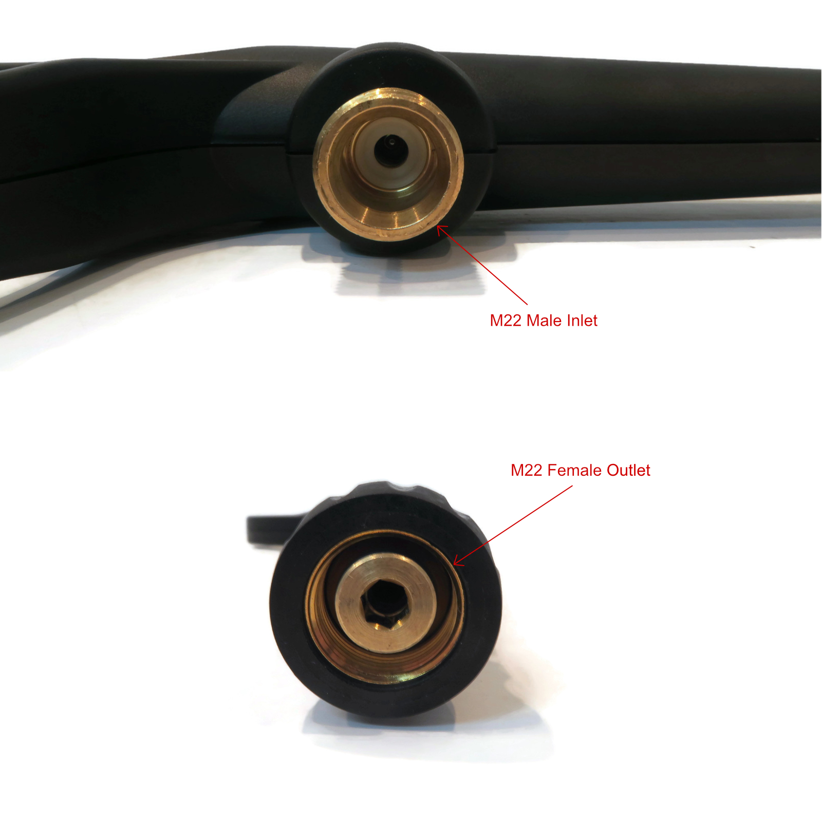 • Specs - Inlet: M22 male. Outlet: M22 female. Max PSI: 3000. Max Temperature: 140° F (60° C). Max GPM: 7. Refer to images 2 & 3 for more information