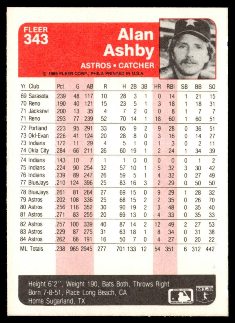 | 1985 Fleer #343 Alan Ashby Houston Astros |