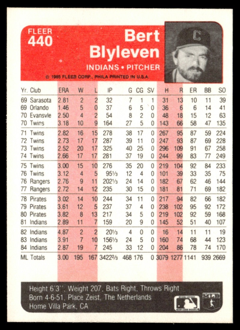 | 1985 Fleer #440 Bert Blyleven Cleveland Indians |