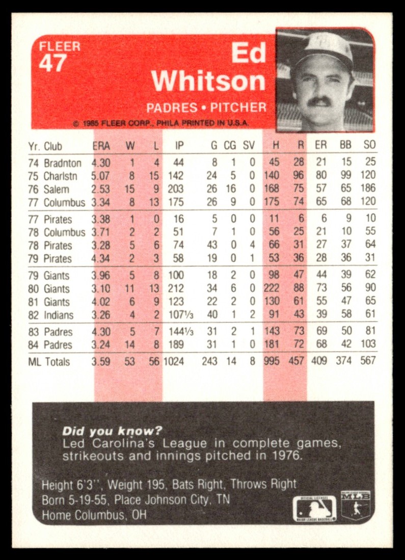 | 1985 Fleer #47 Ed Whitson San Diego Padres |